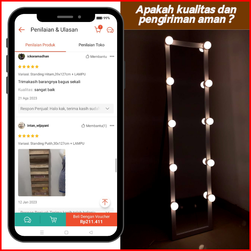 Cermin Standing Mirror Dekorasi Rumah Cermin Rias Vanity Miror Aesthetic Full Body Berdiri Penghias Kamar Minimalis Perl