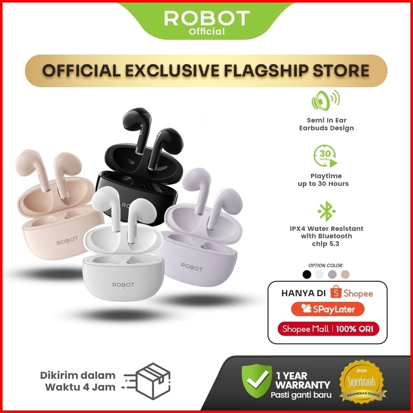 Robot Tws Flybuds T10s Semi In Ear Wireless Earbuds Bluetooth 5.3 Ipx4 Waterproof Original - Garansi 1 Tahun