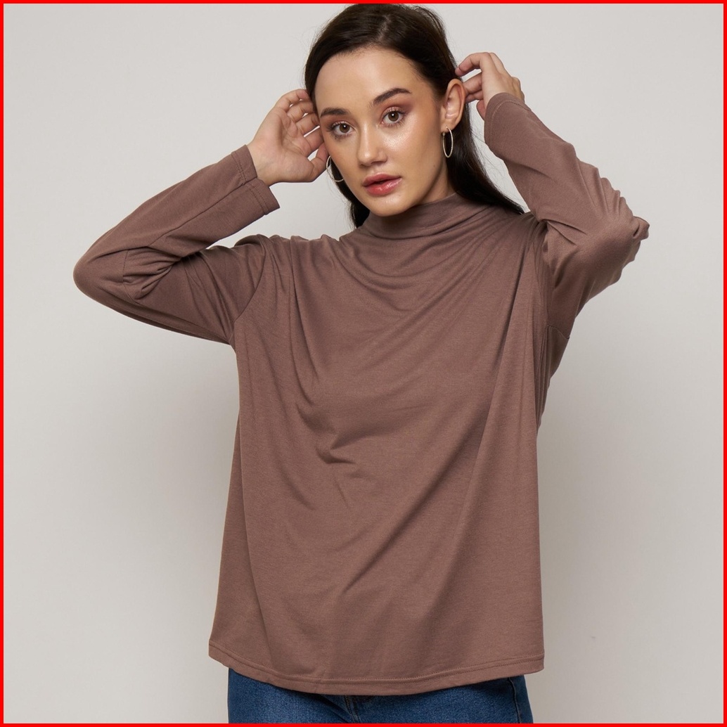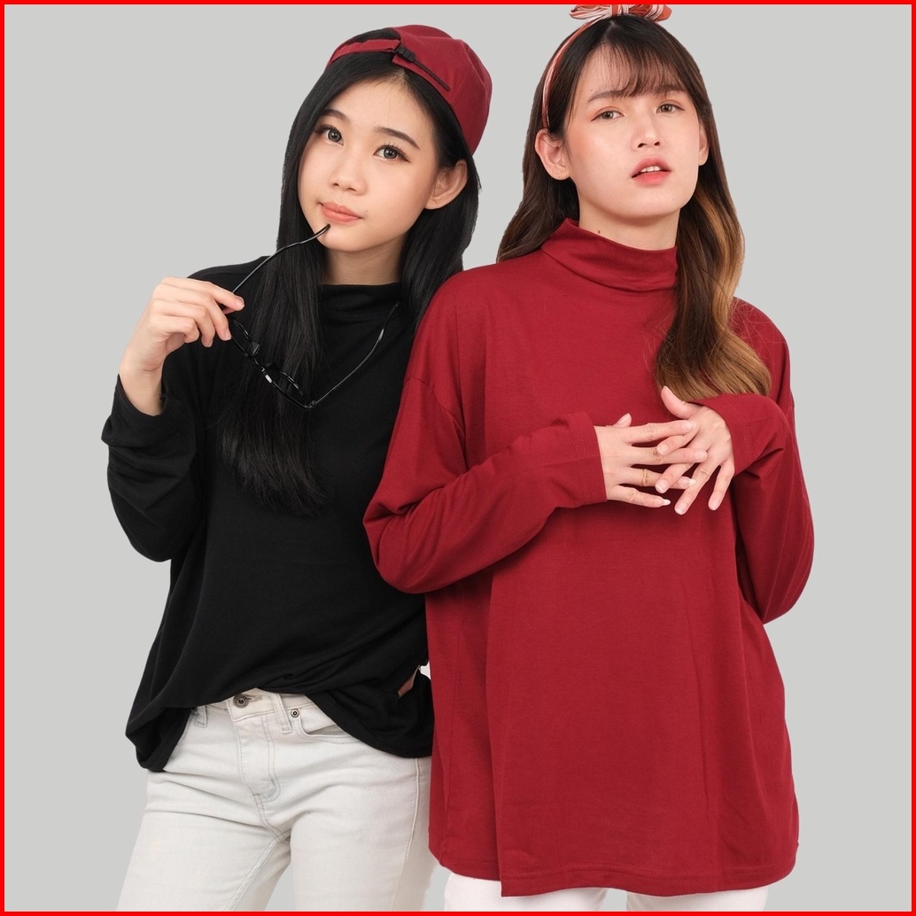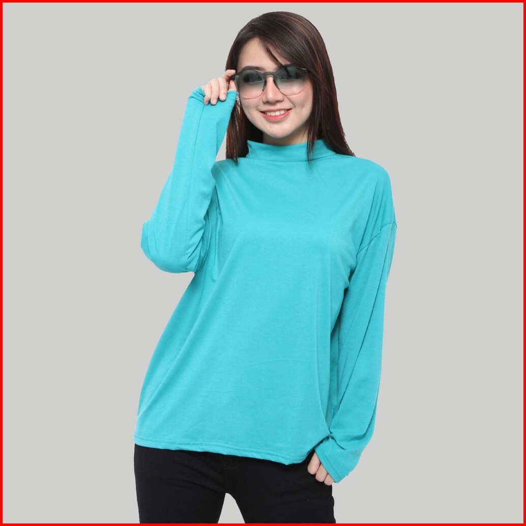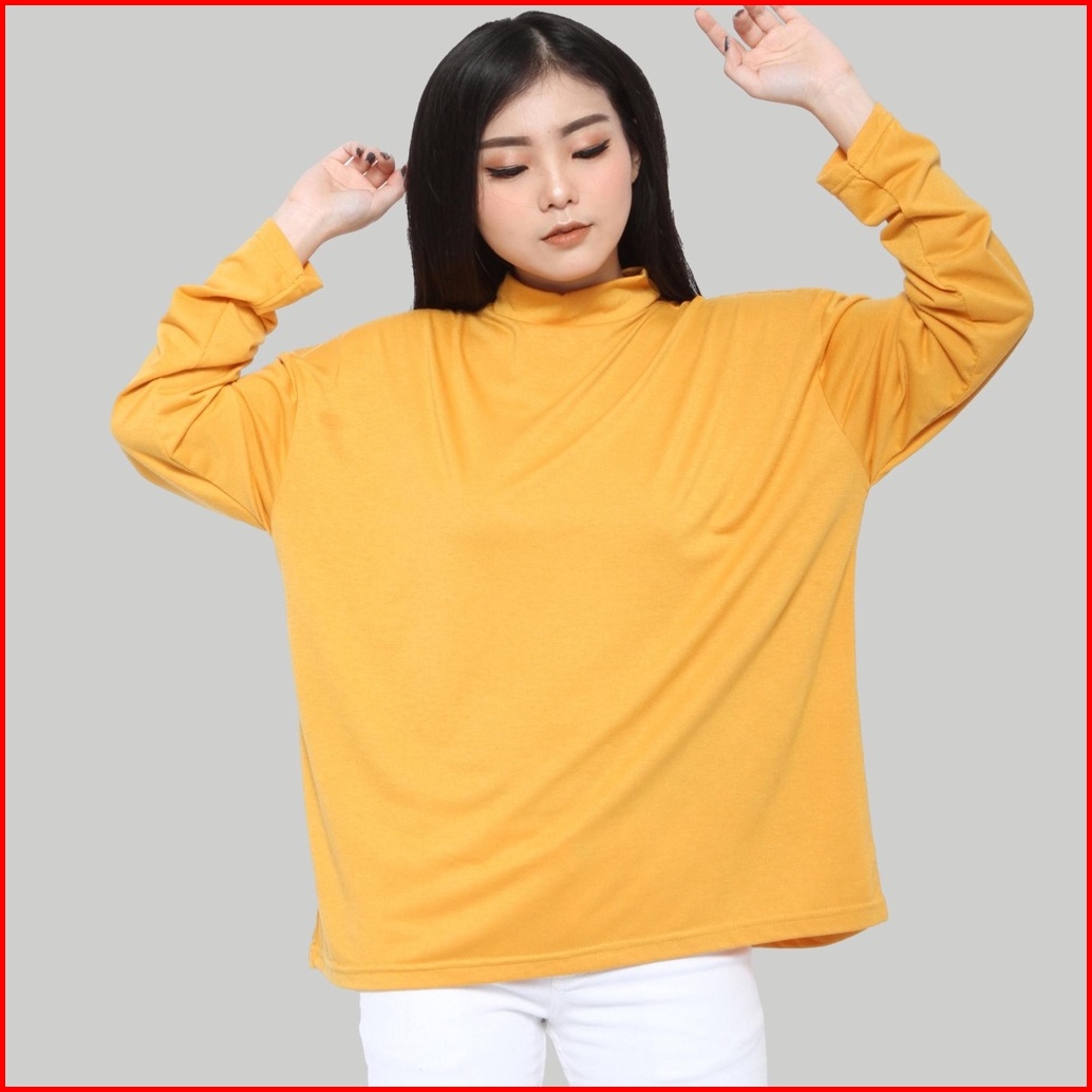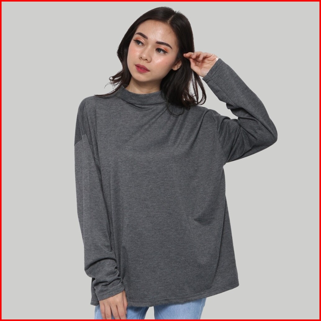 Monellina Manset Kaos Oversize Wanita Lengan Panjang Turtleneck