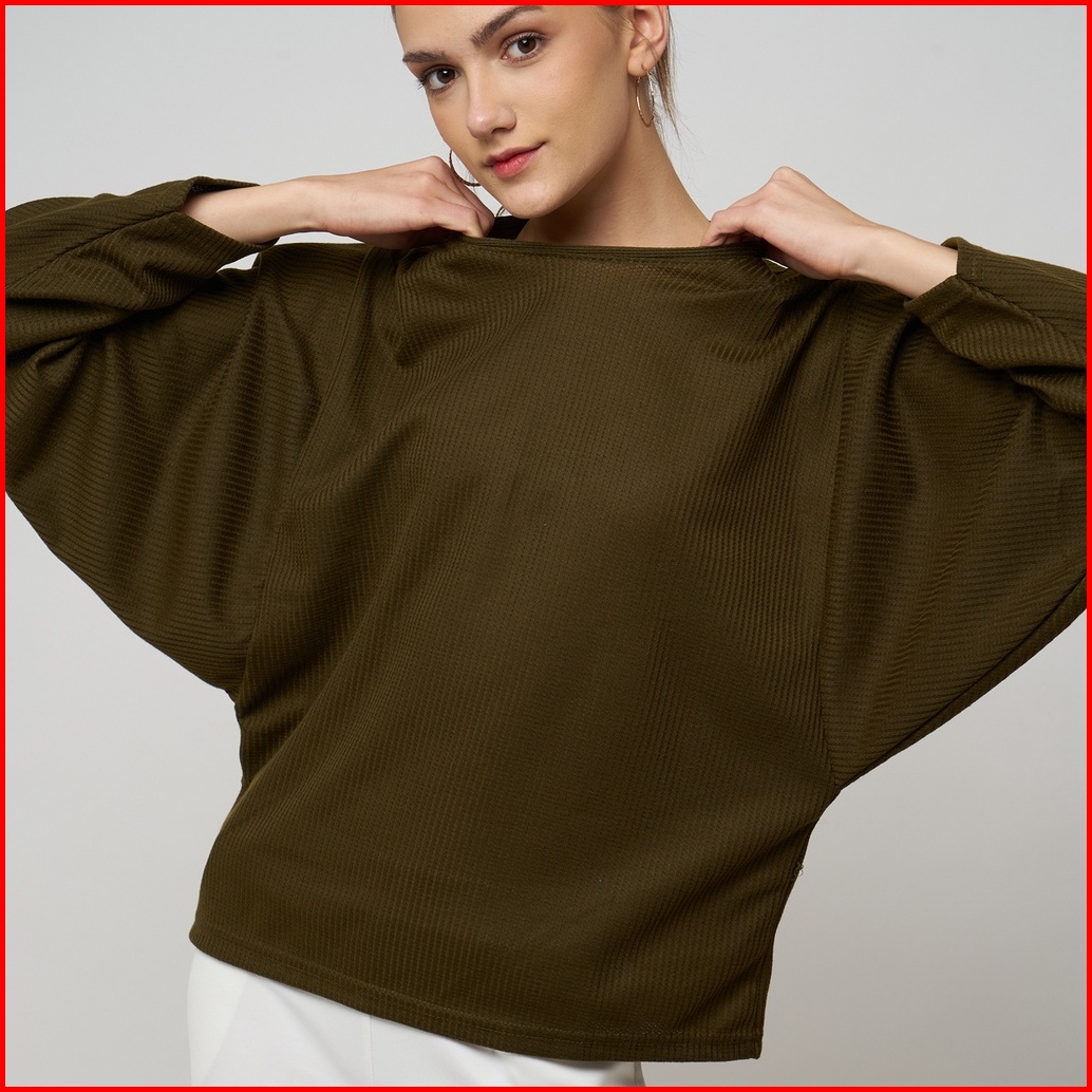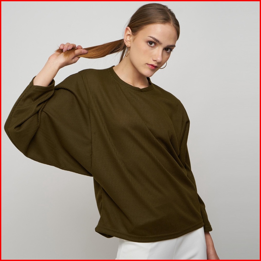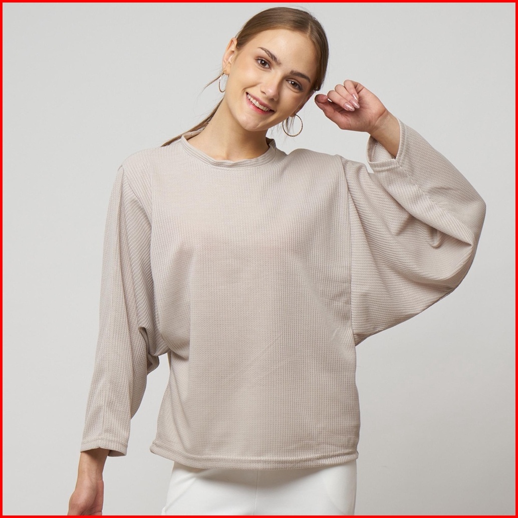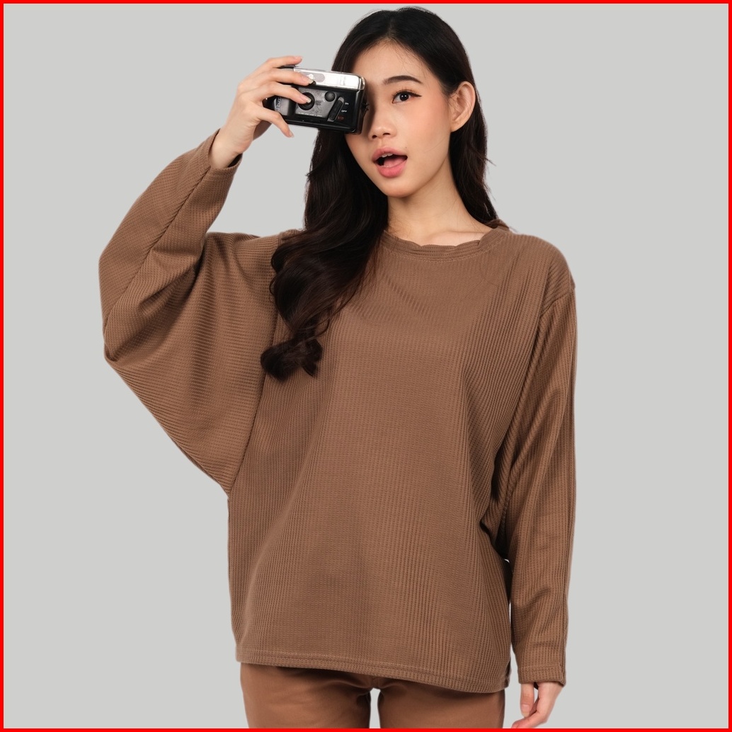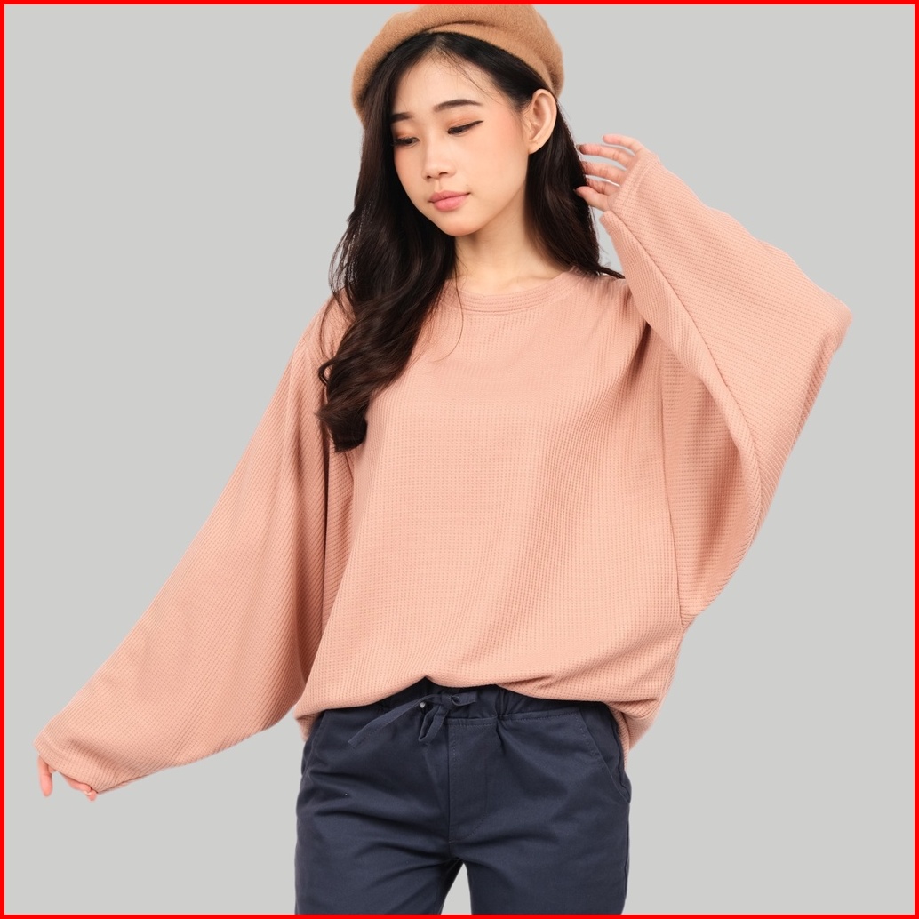 Monellina Kekey Kaos Oversize Wanita Batwing Lengan Panjang