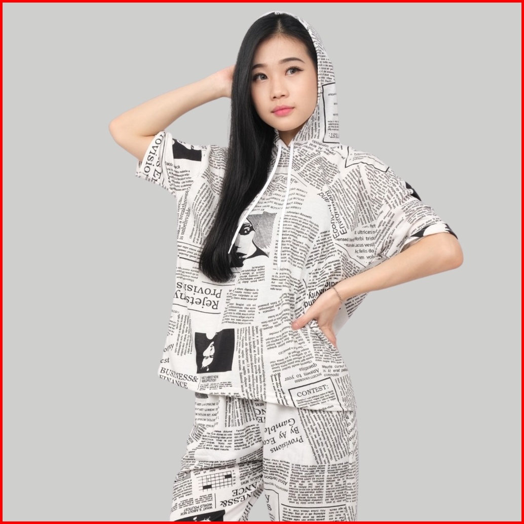 Monellina Halka Hoodie Oversize Wanita Lengan Pendek