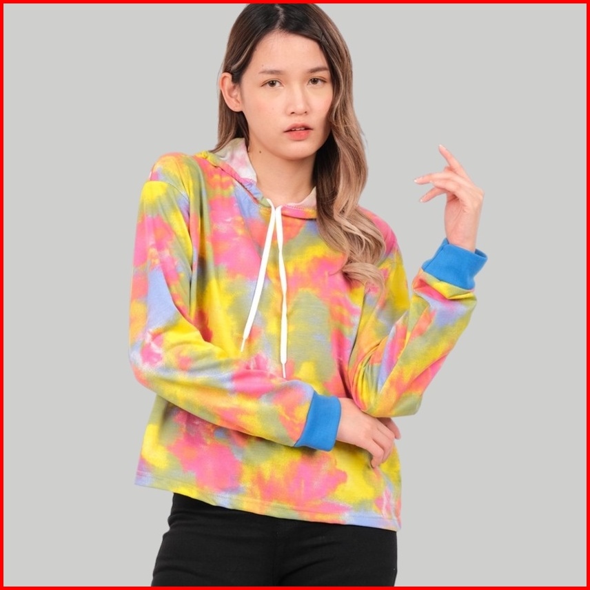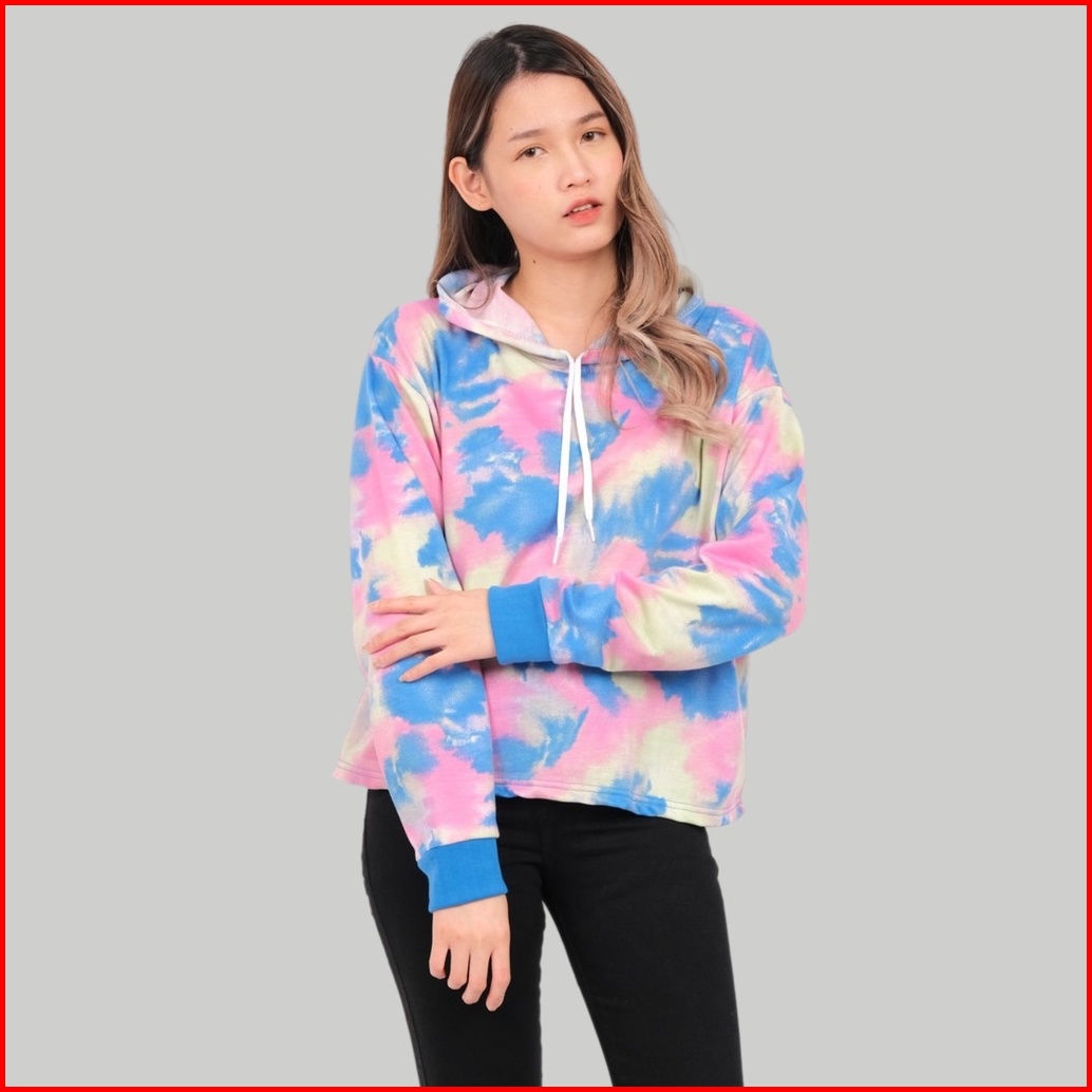 Monellina Reese Hoodie Crop Oversize Wanita Tie Dye