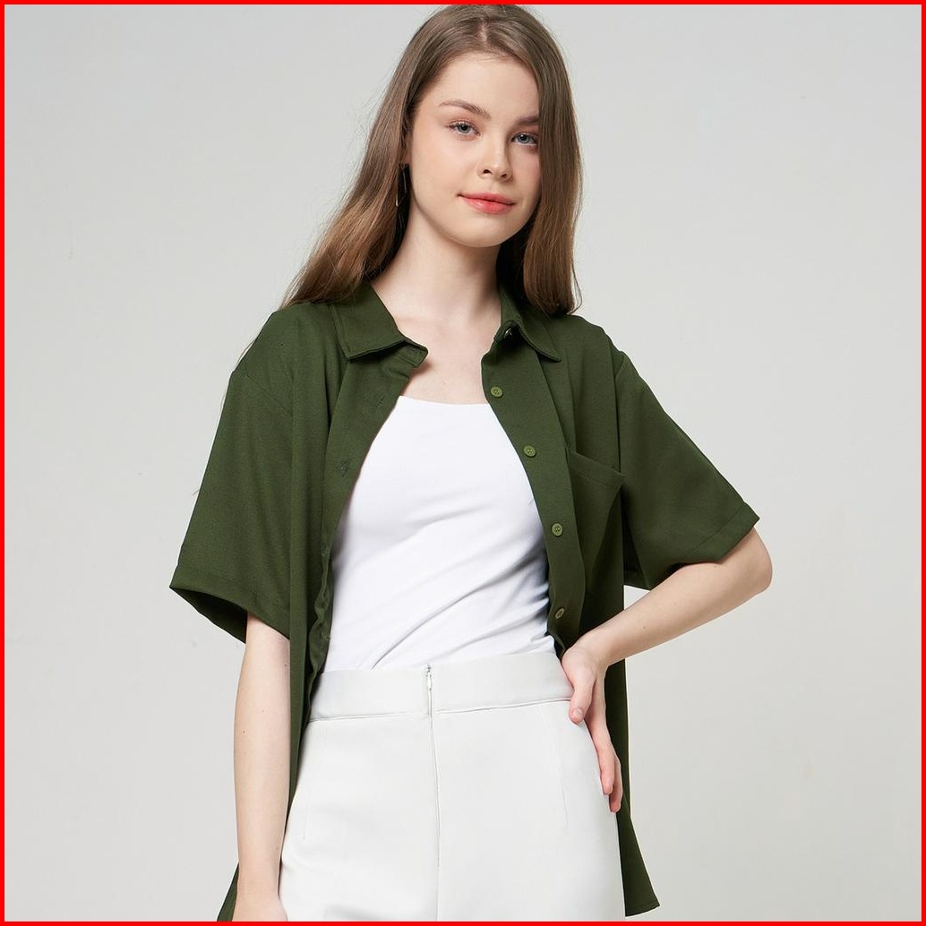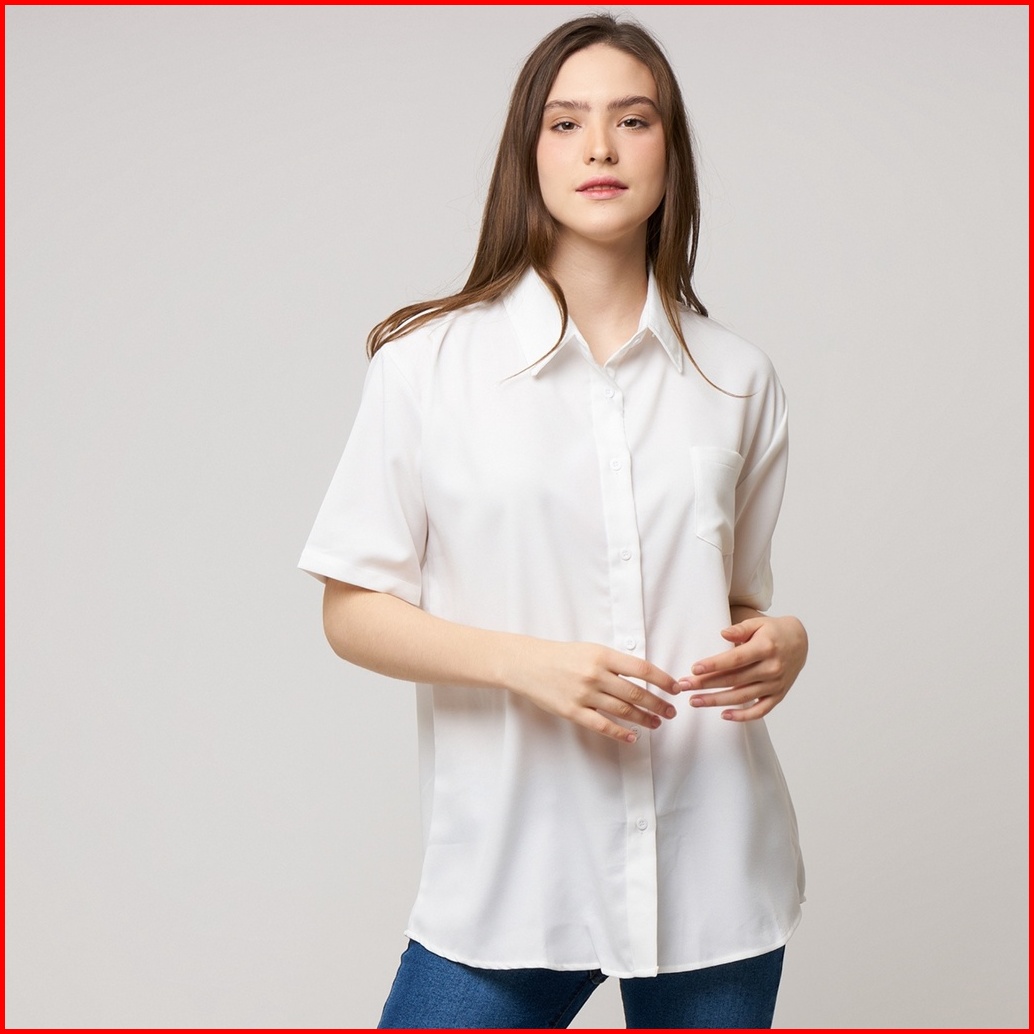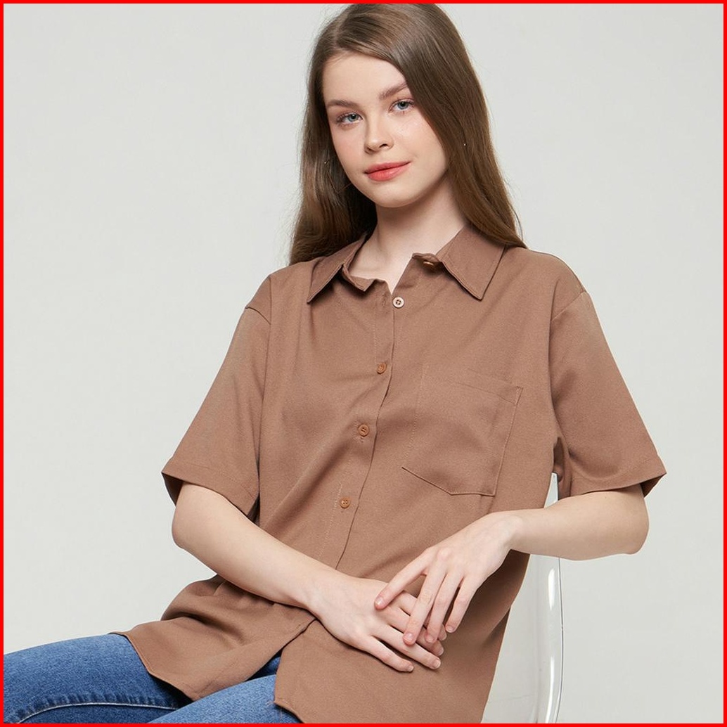Monellina 601065 Kemeja Oversize Wanita Lengan Pendek Polos