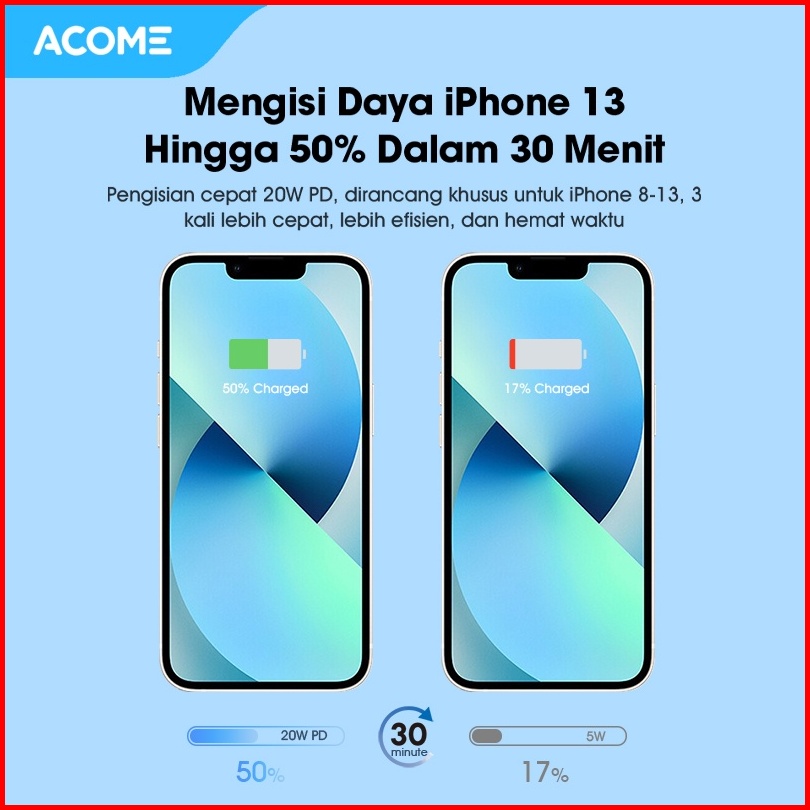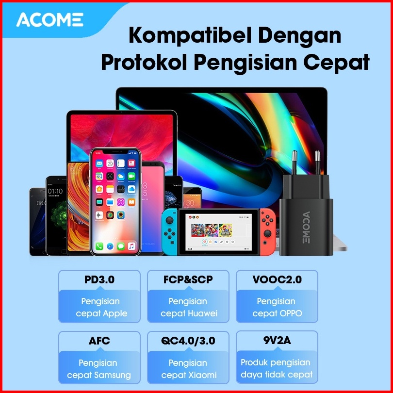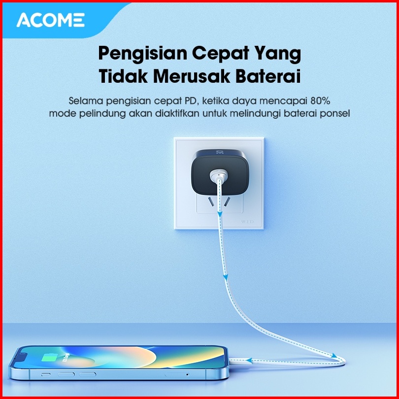 Acome Charger Original 20w Pd Fast Charging Usb-c Support Mobile Ipad Ac07 Original