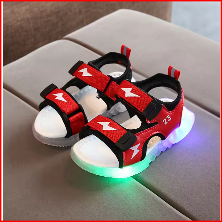 Mosbo Sepatu Led Anak Laki Laki Sepatu Lampu Anak Laki Laki Led Sepatu Sandal Led Motif Lighting Thunder Baru Mbk42