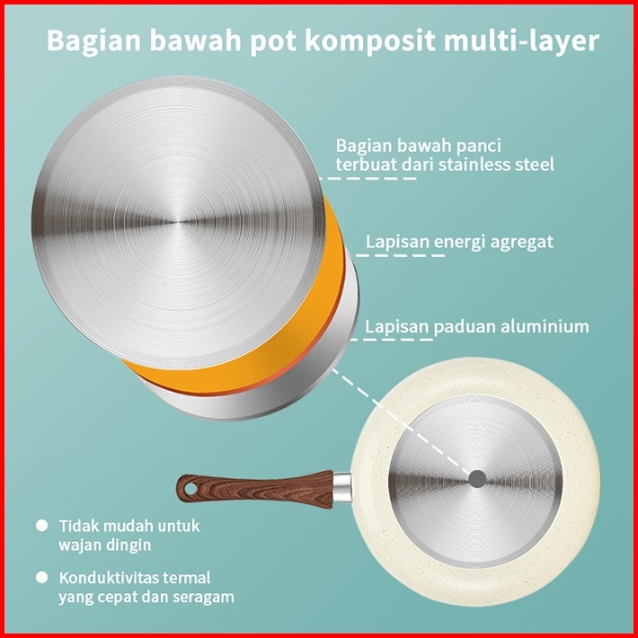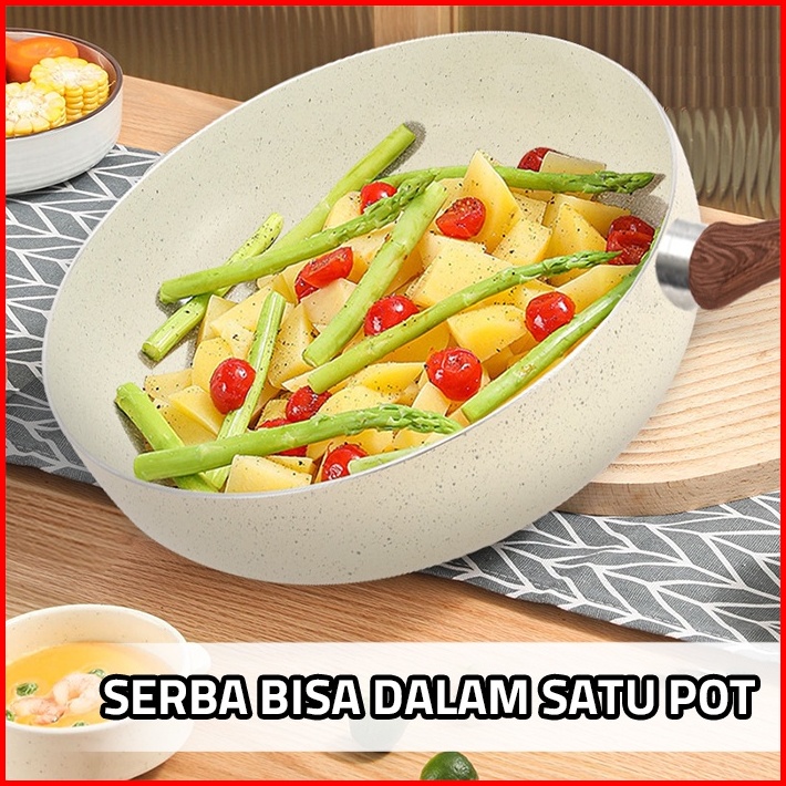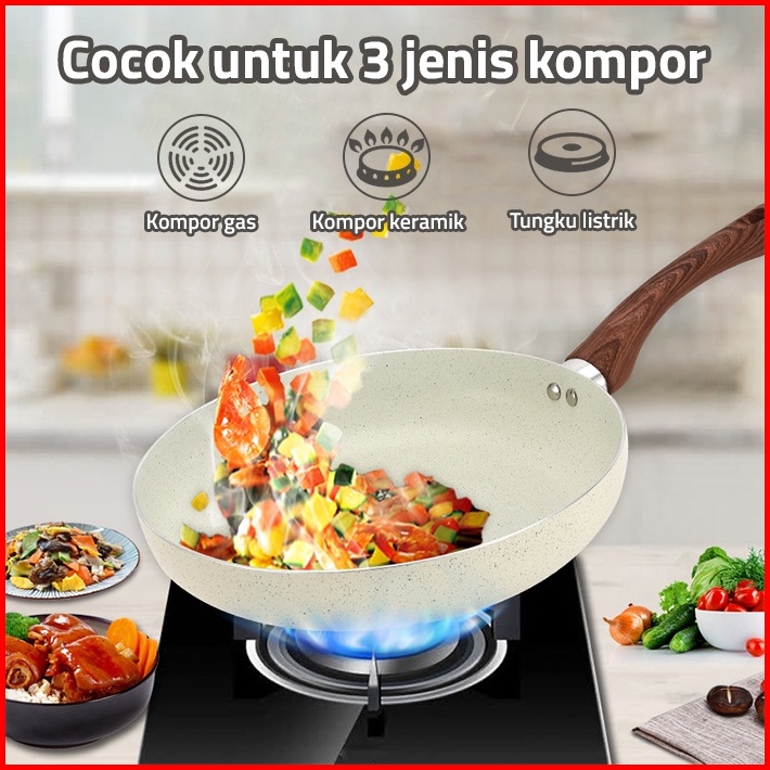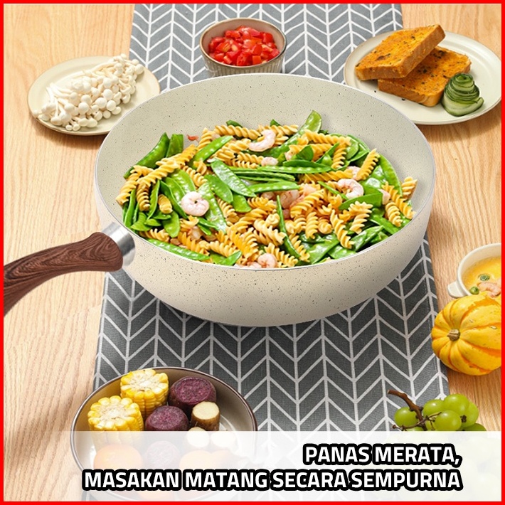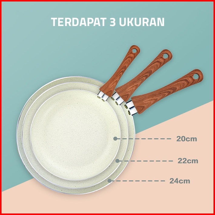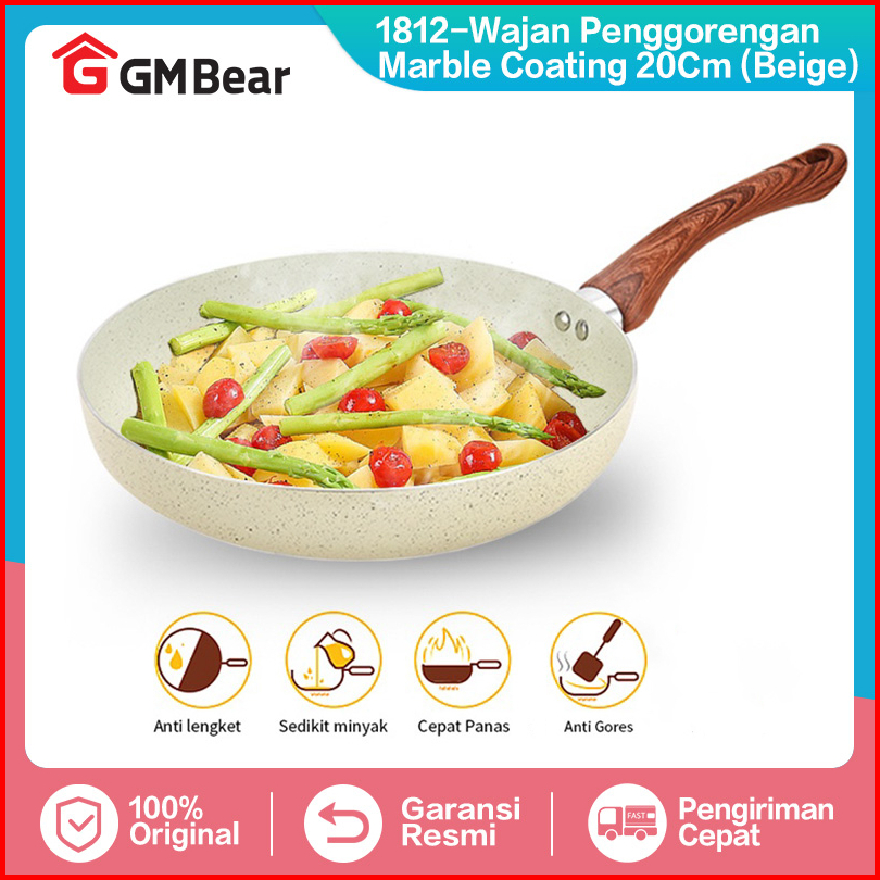 Gm Bear Wajan Penggorengan Marble Coating 20cm Beige 1812 - Wajan Fry Pan Marble Coating