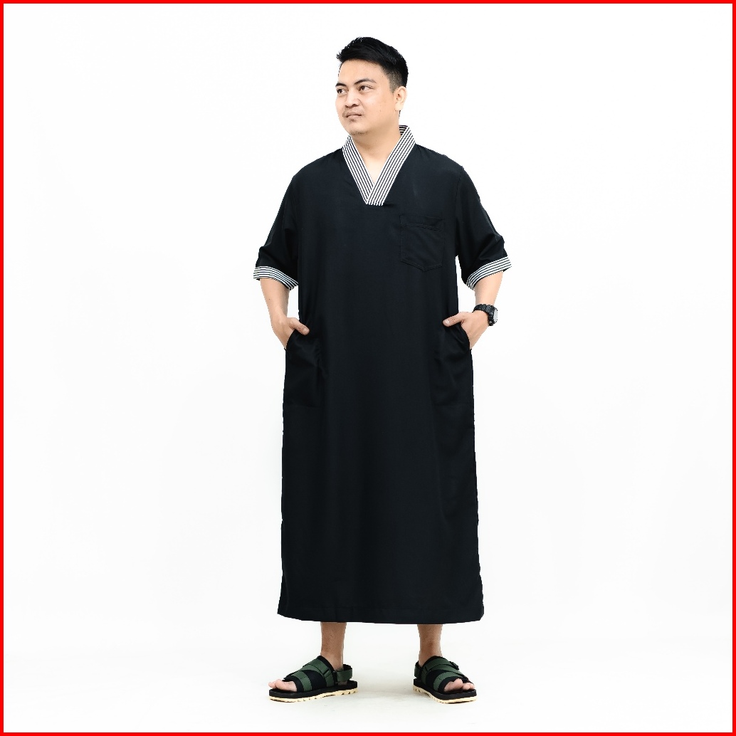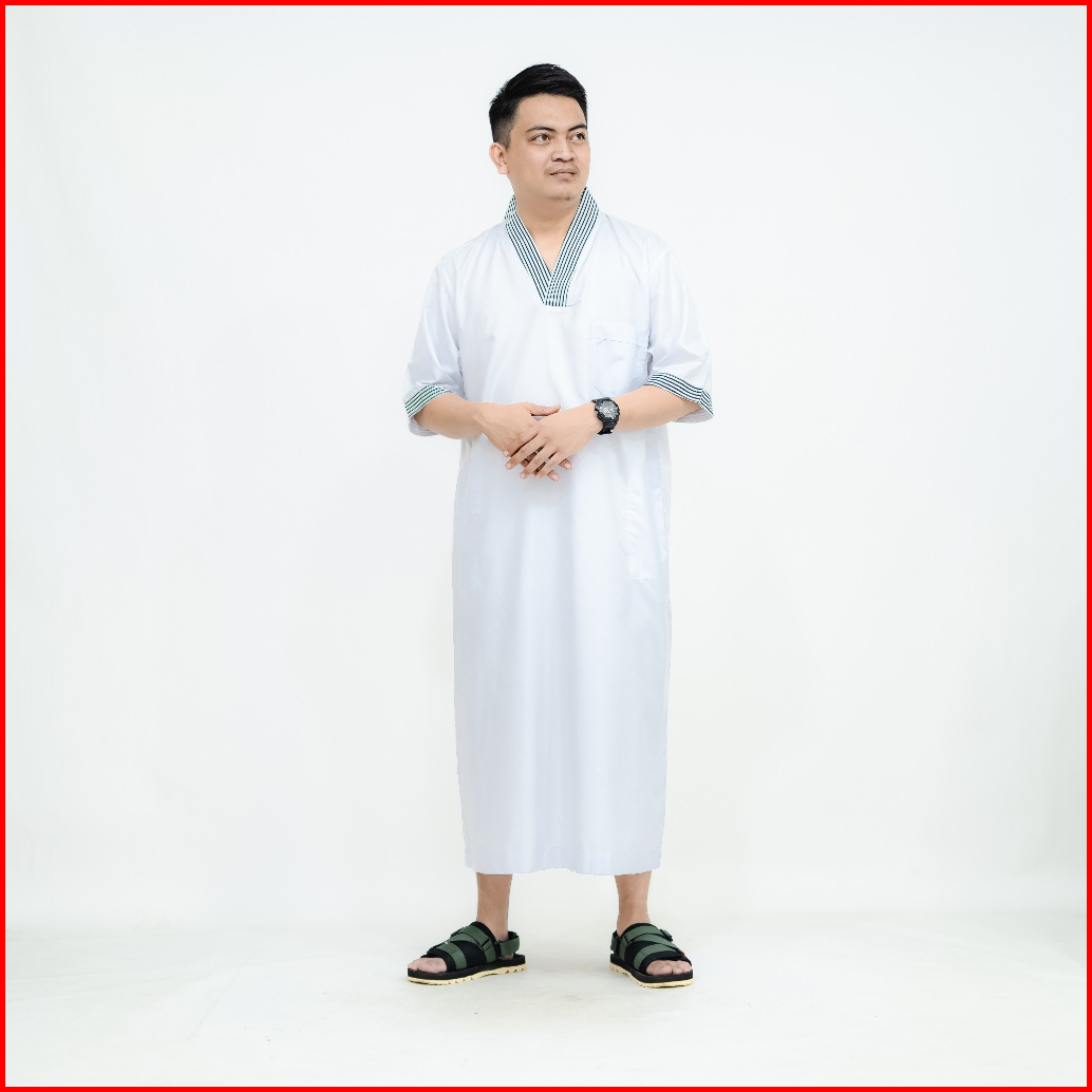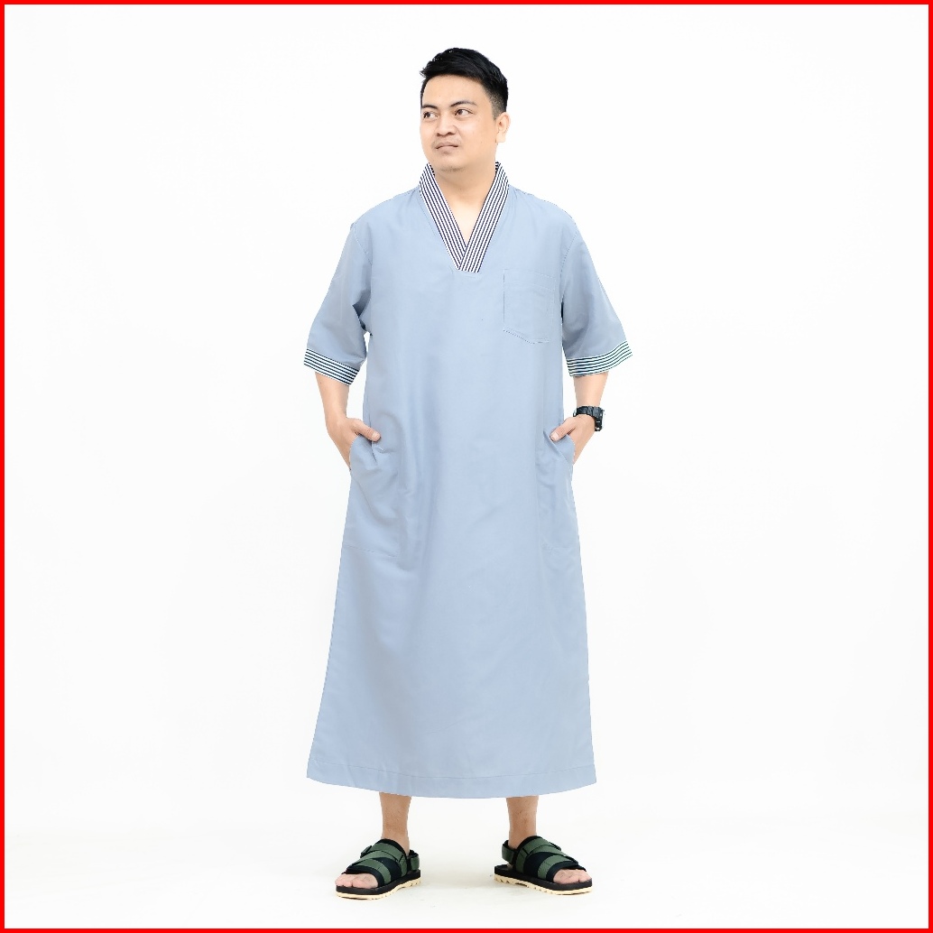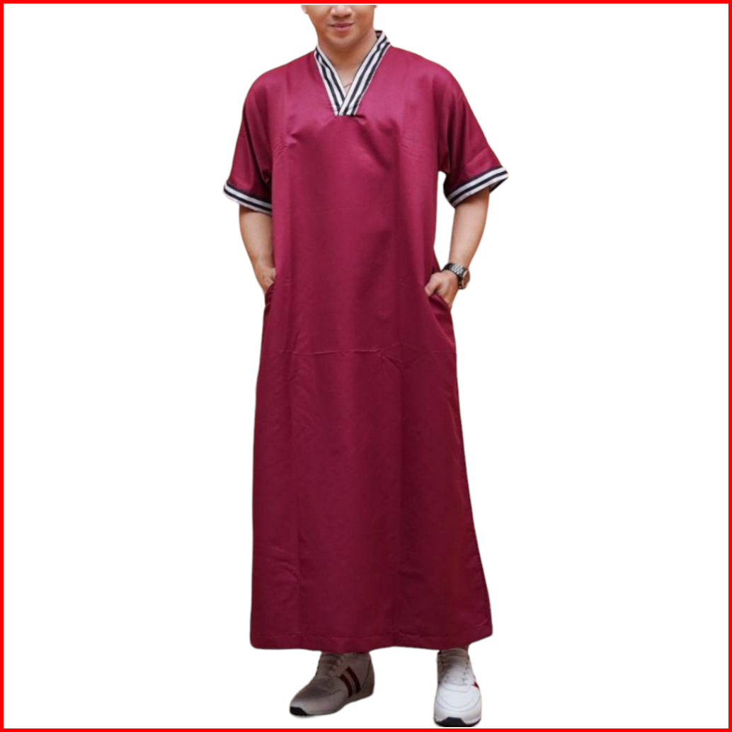 Jubah Pria Dewasa Lengan Pendek Maroko Kerah V Bahan Katun