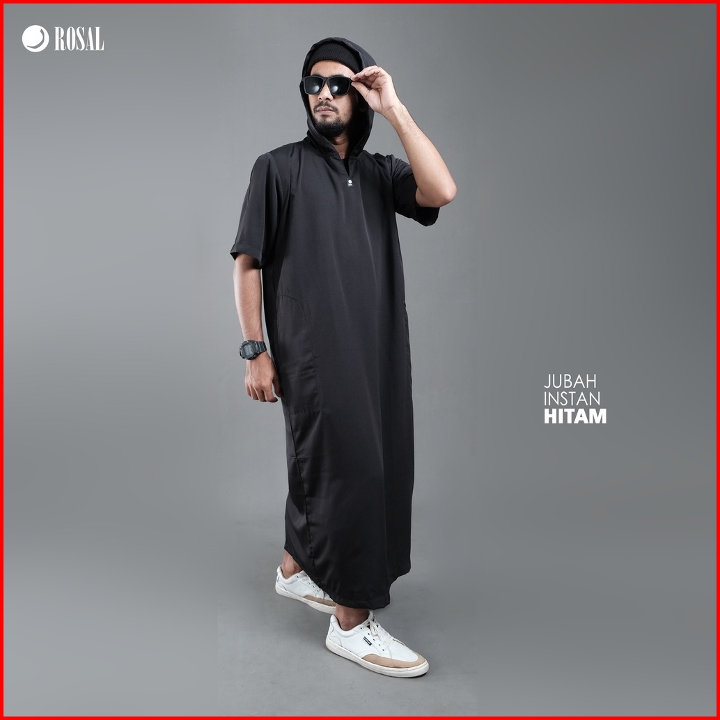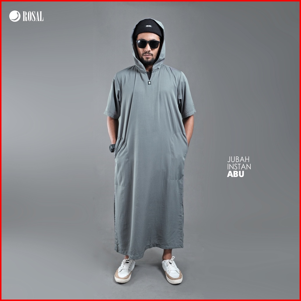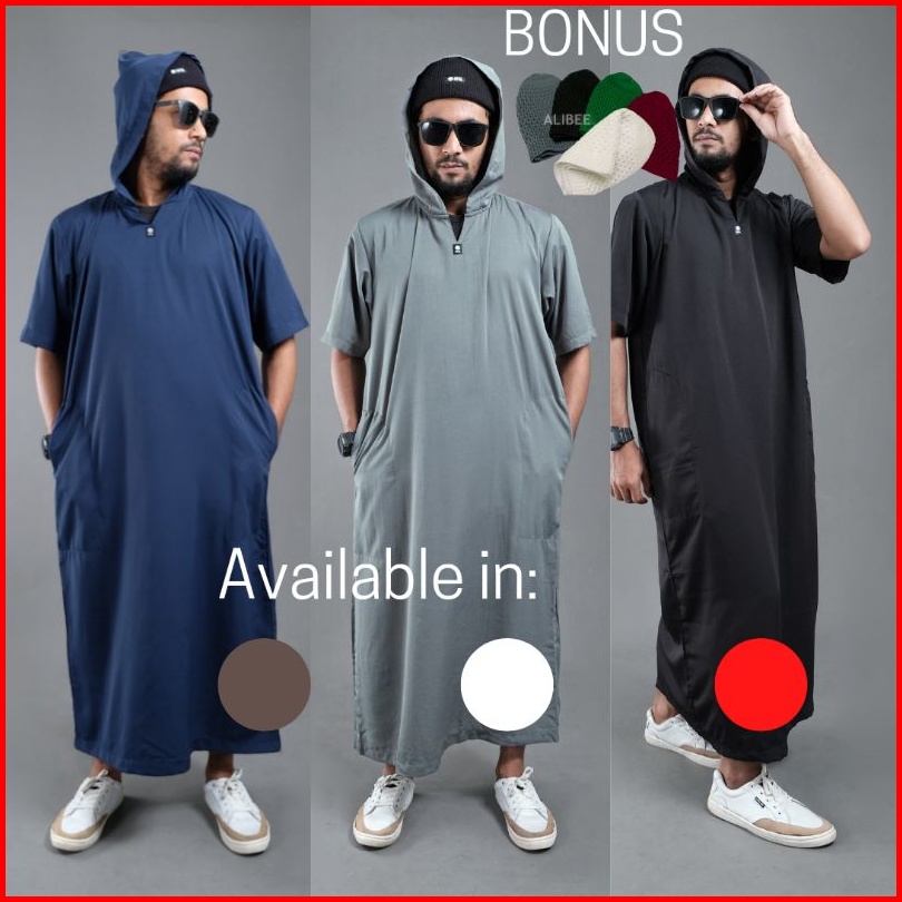 Jubah Gamis Pria Lengan Pendek Hoodie Bahan Katun Baby Silk Adem Ukuran M-3xl By Rosal