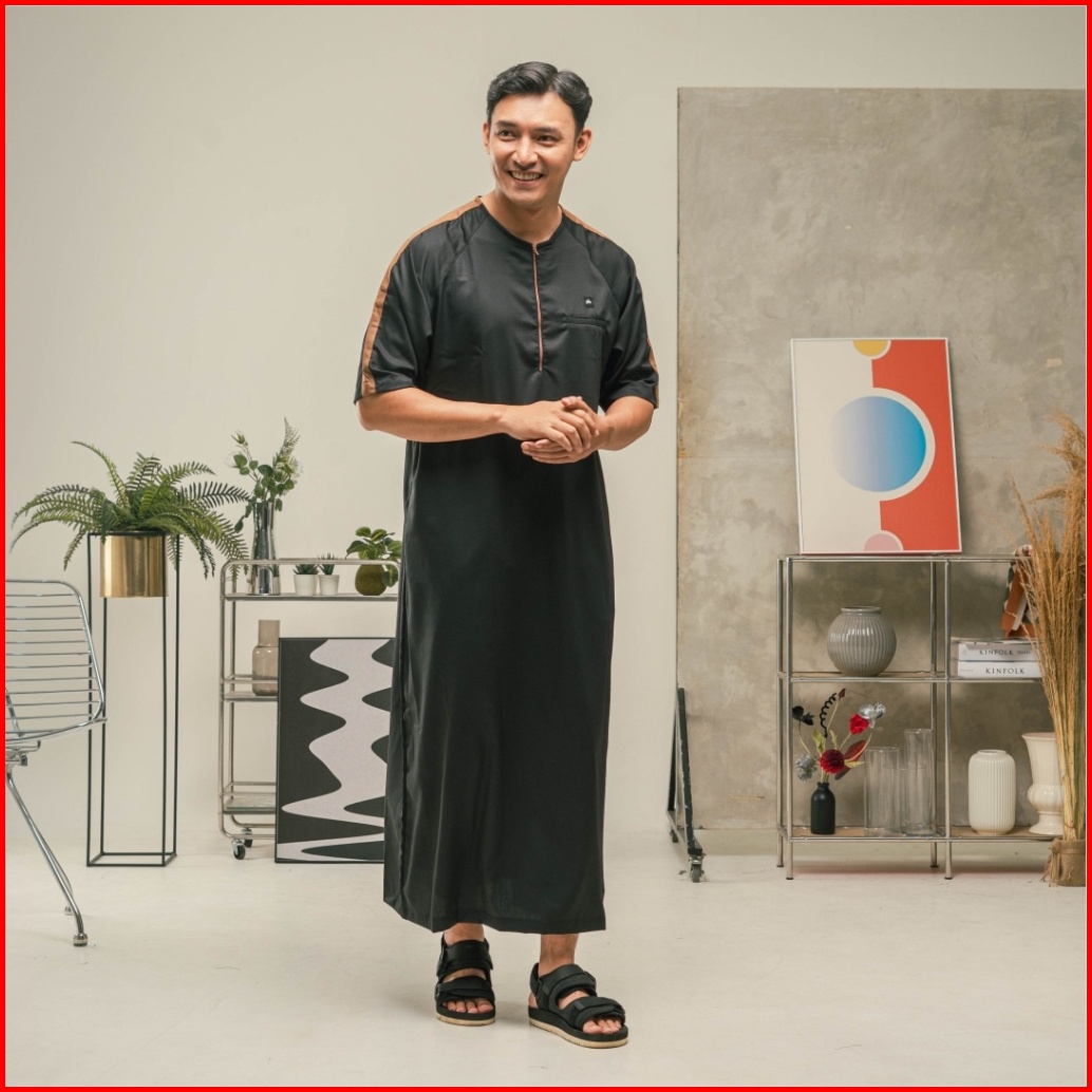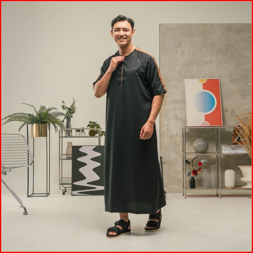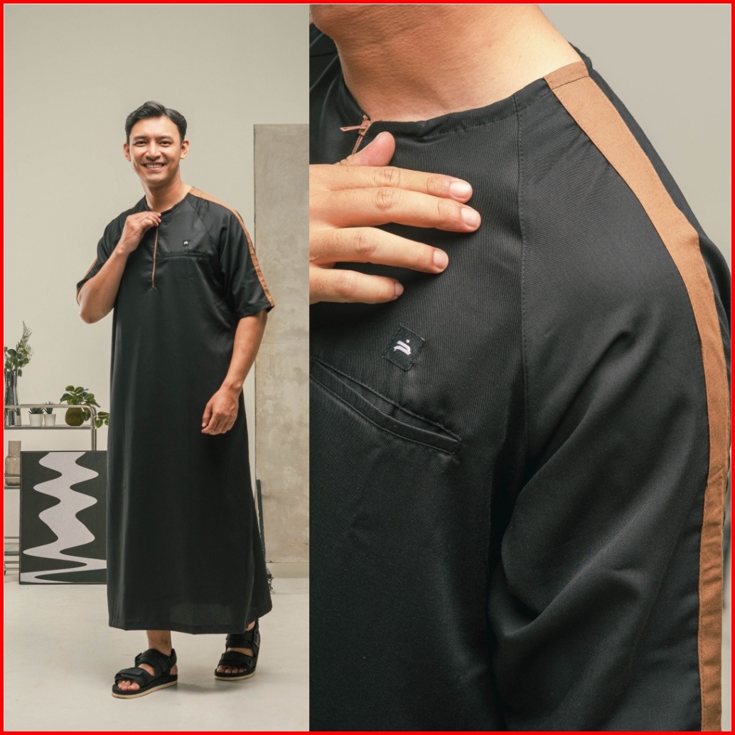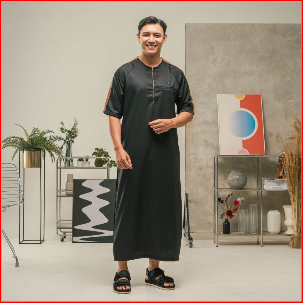 Khoirummah Jubah Ummah Dewasa - Gamis Pria Dewasa Tangan Pendek - Black