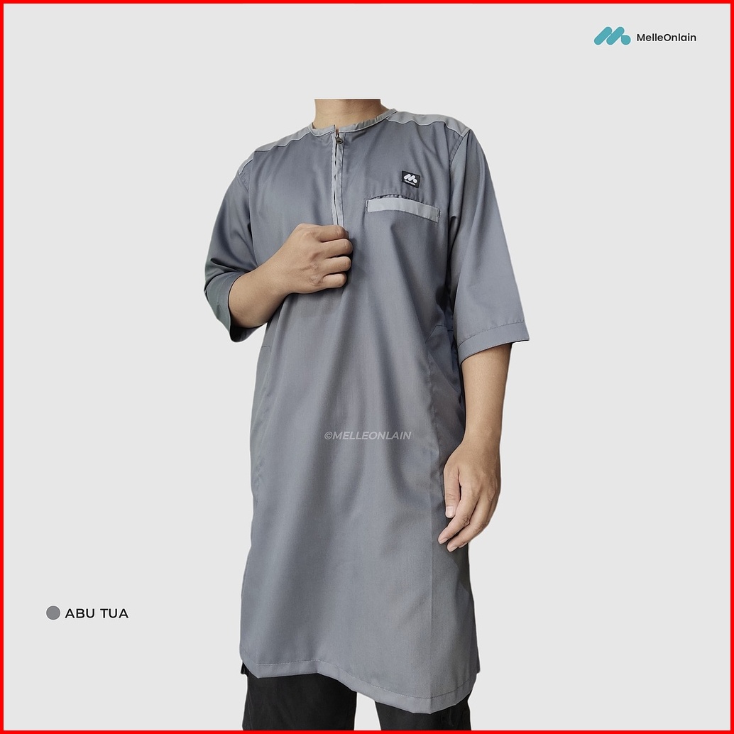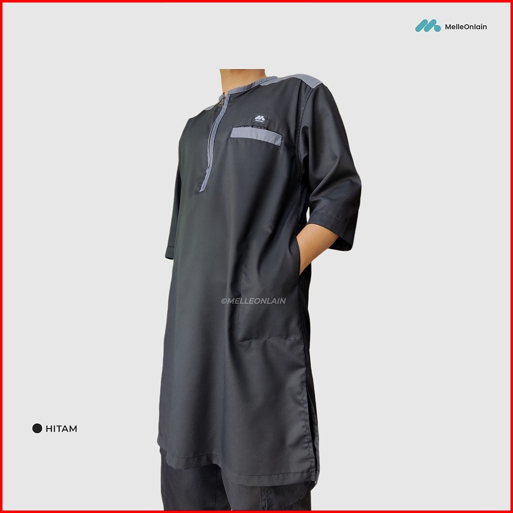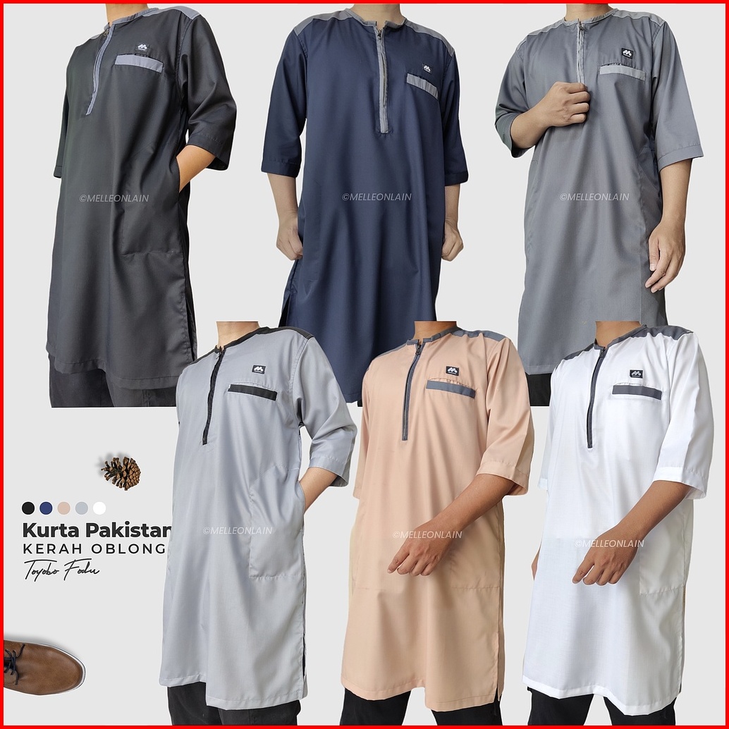 Kurta Pakistan Gamis Oblong Pria Lengan Pendek 3 4 Variasi Lis Plat Katun Toyobo Premium By Melleonlain
