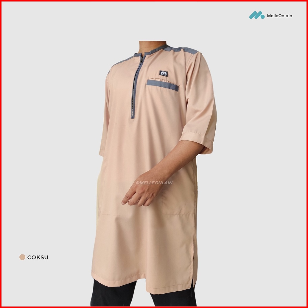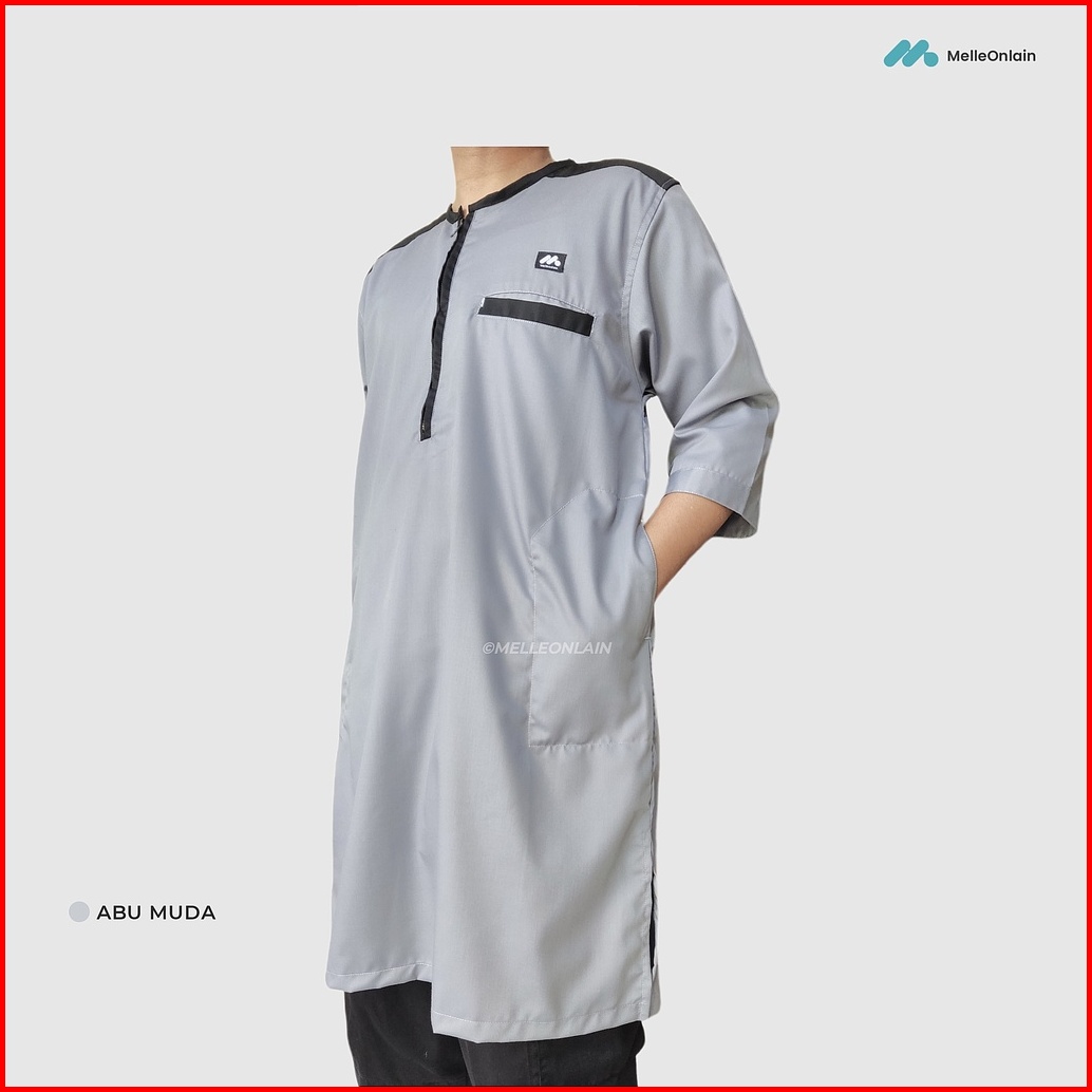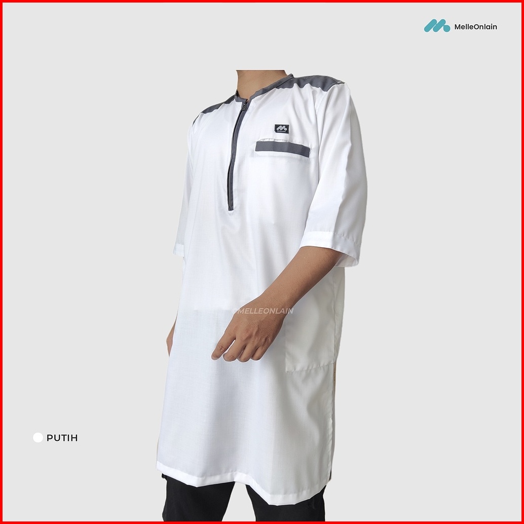 Kurta Pakistan Gamis Oblong Pria Lengan Pendek 3 4 Variasi Lis Plat Katun Toyobo Premium By Melleonlain