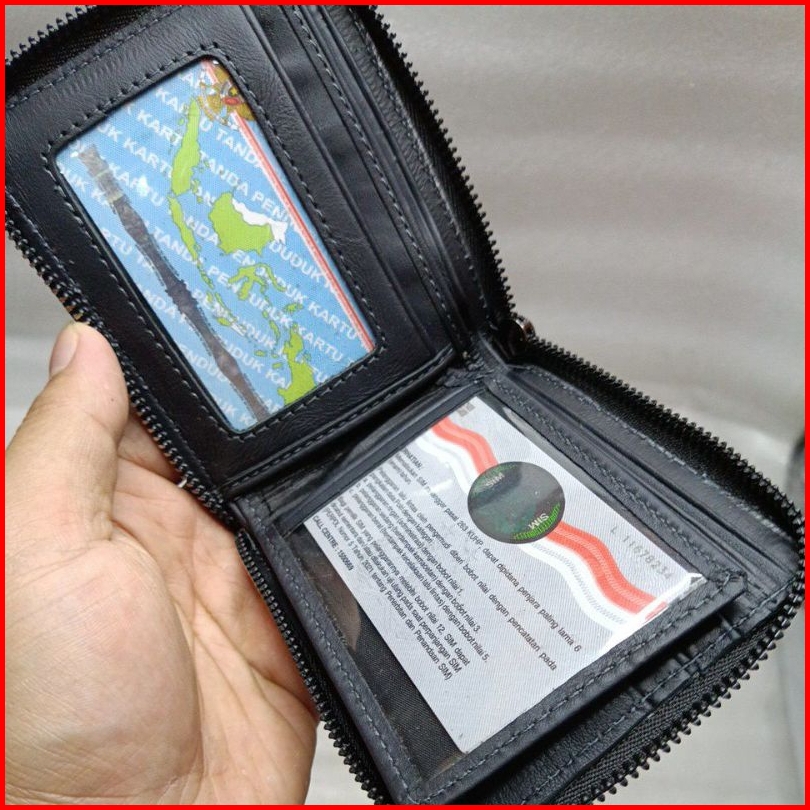 Dompet Kulit Pria Srd-13 Resleting Putar Dompet Lipat Seleting Pria Wanita Kulit Garut