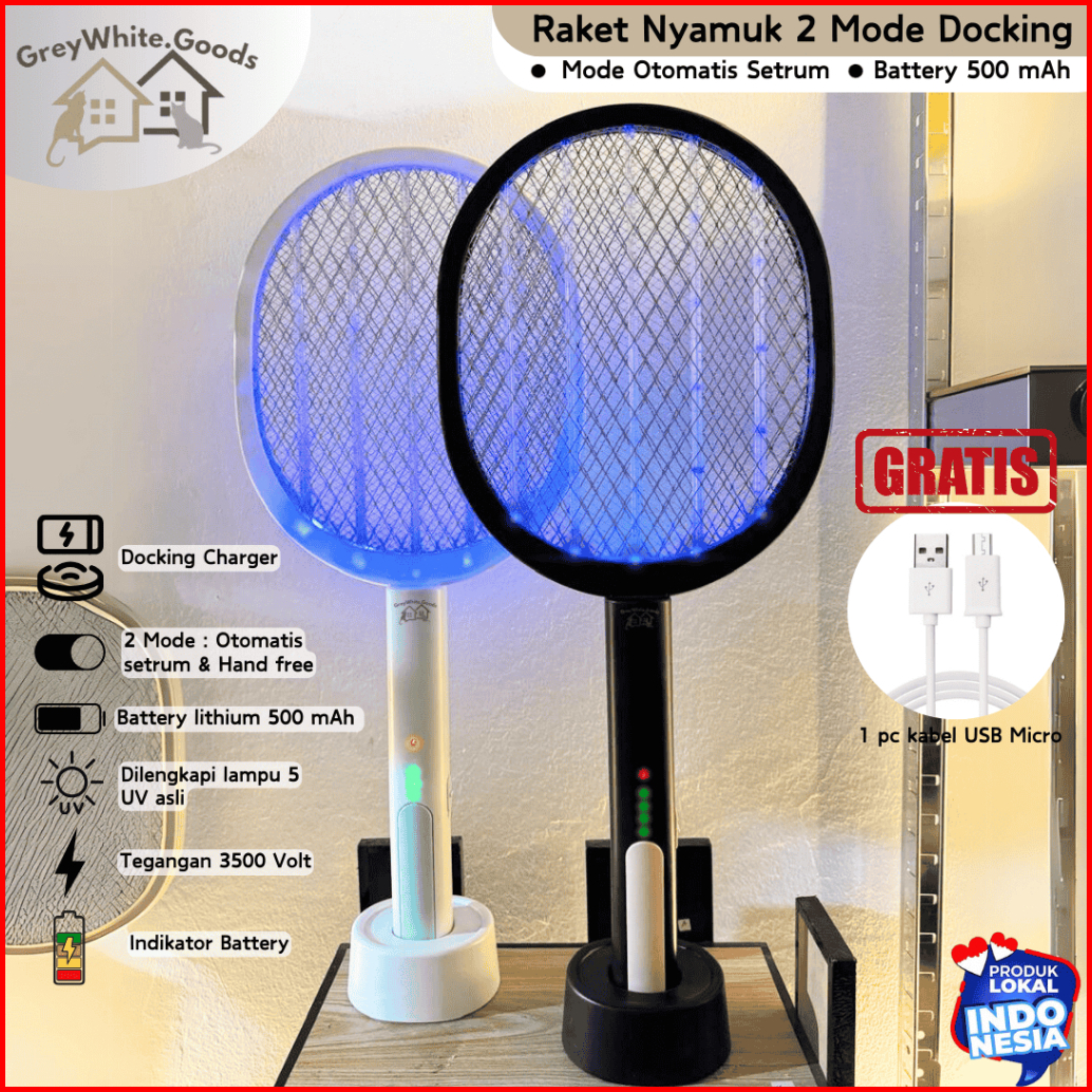 Raket Nyamuk 2 Mode Indikator Batre Docking Charger