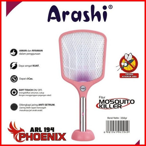Arashi Raket Nyamuk Cas Arl 194 Phoenix Pembasmi Serangga 2 Fungsi