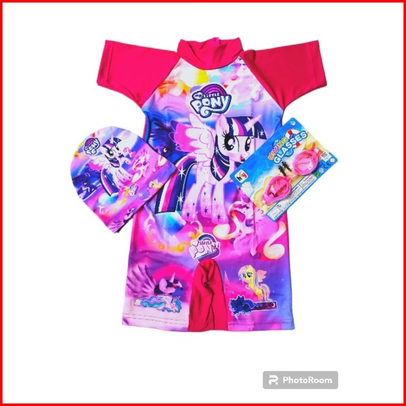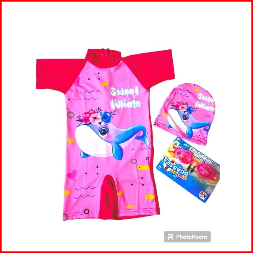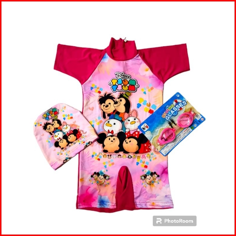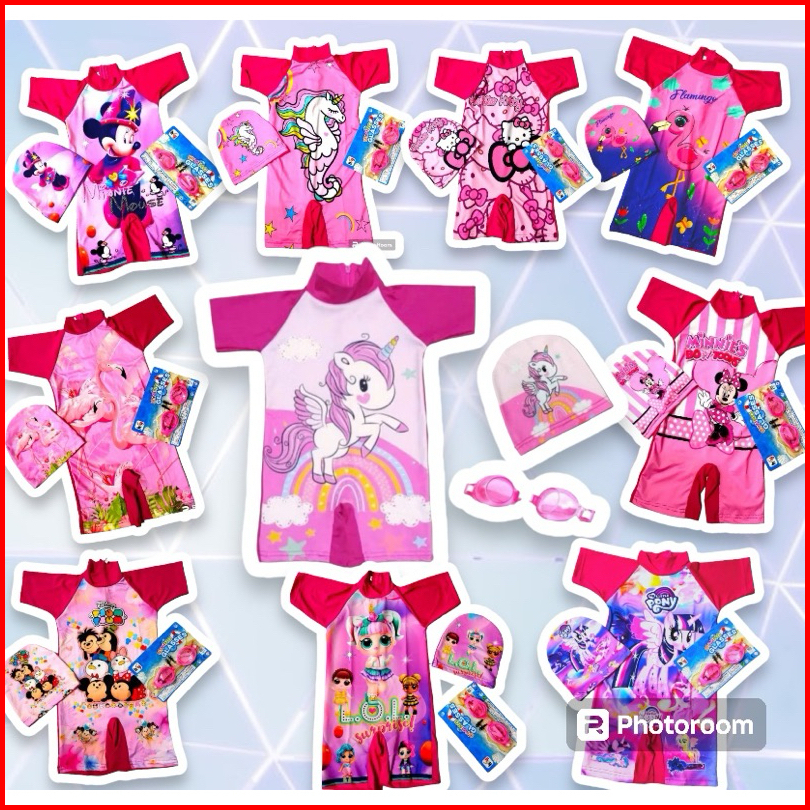 Baju Renang Anak Motif Karakter Perempuan Mix Baju Topi Kacamata
