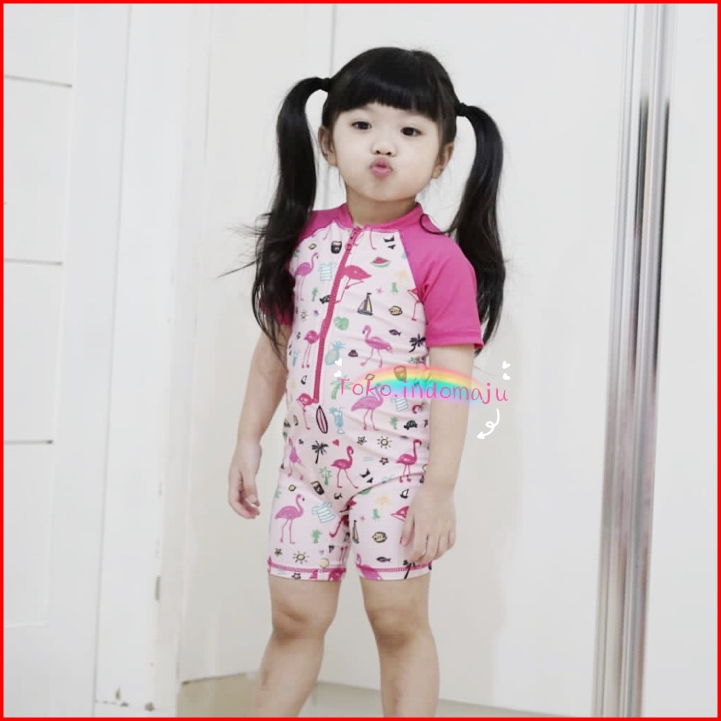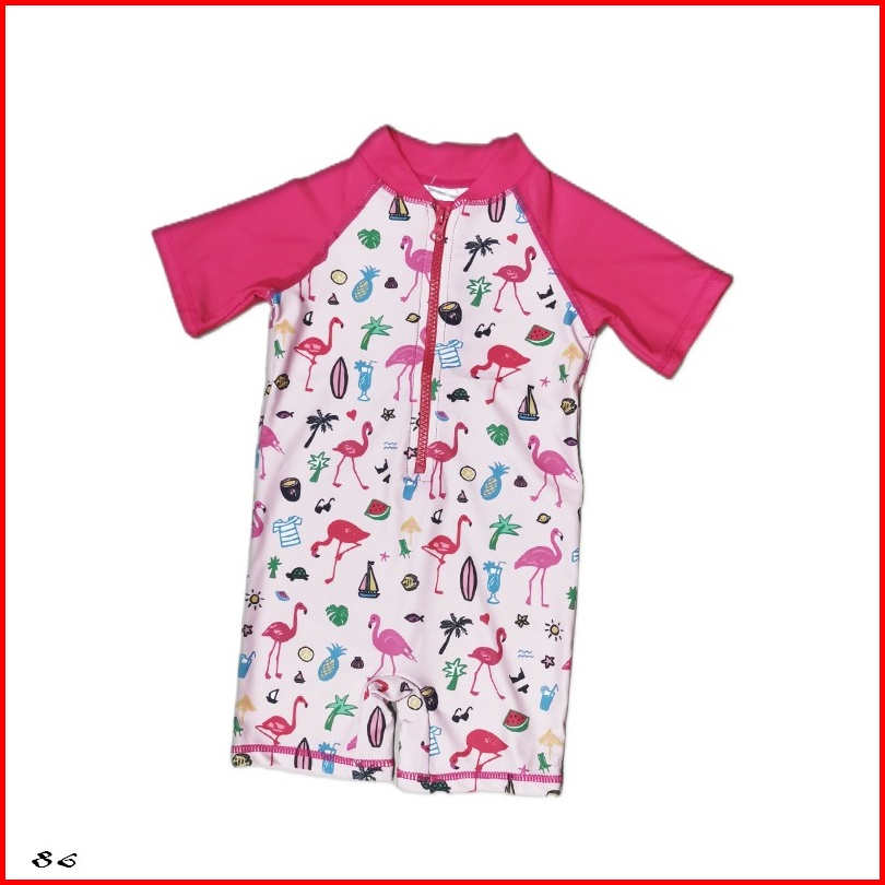Y05-86 Baju Renang Anak Murah Import Antiuv Pakaian Renang Motif One Piece 1-4 Tahun Lengan Pendek Bayi Pink Flamingo Ce