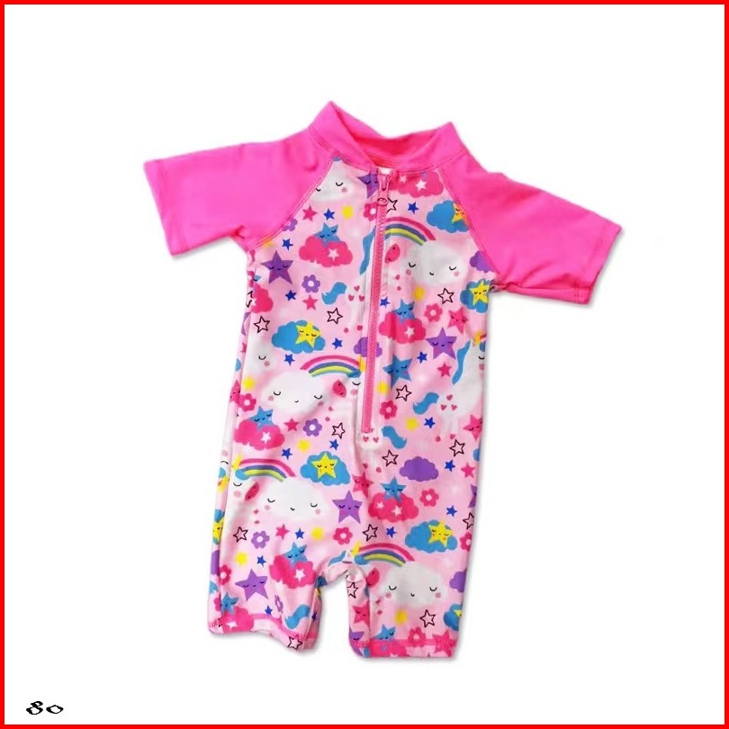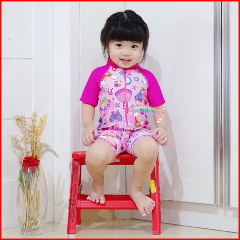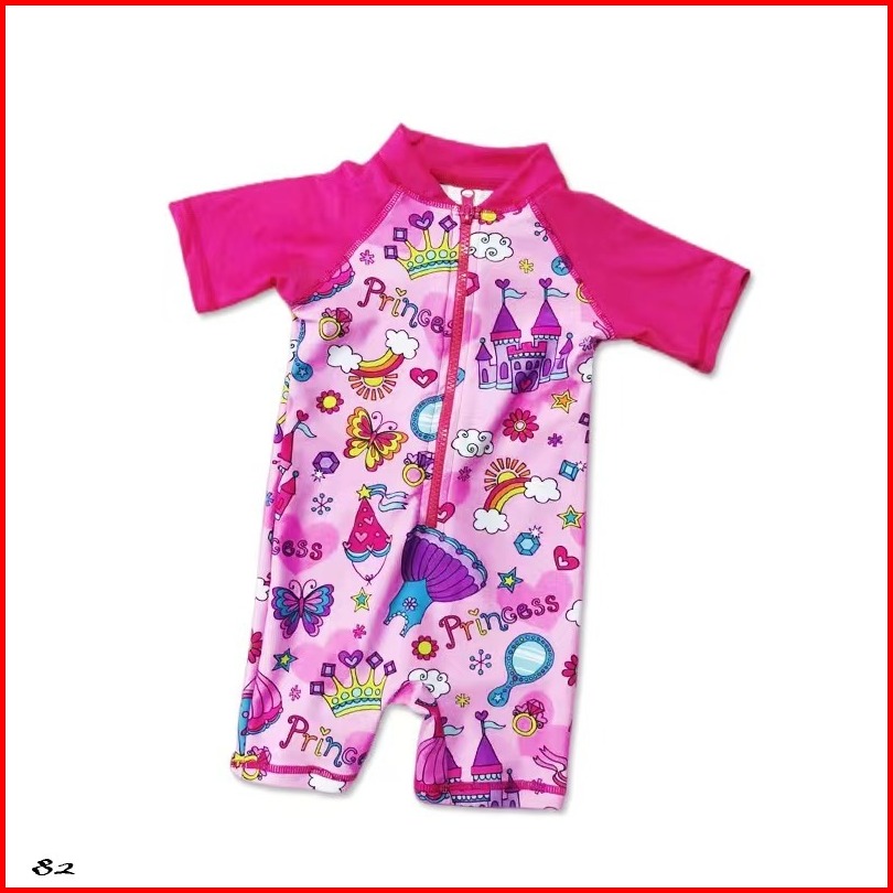 Y05-82 Baju Renang Anak Murah Import Antiuv Pakaian Renang Motif One Piece 1-4 Tahun Lengan Pendek Bayi Cewek Pink
