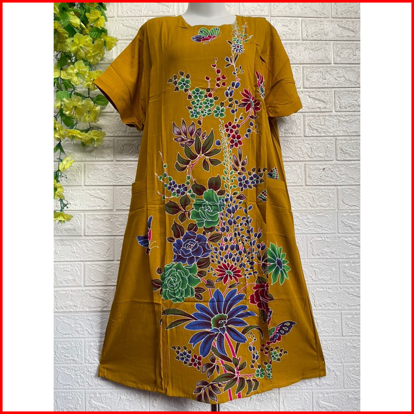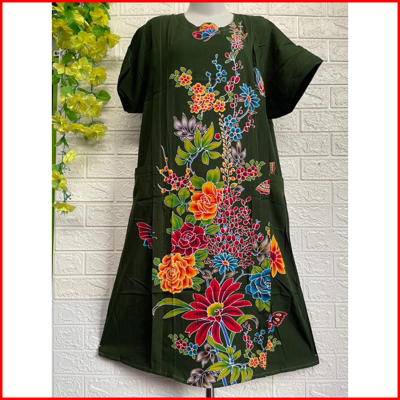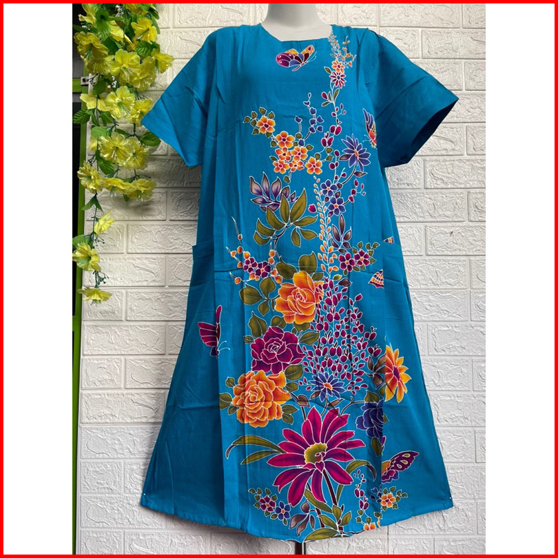 Piyama Tidur Baju Santai Wanita Daster Kencana Ungu Model 25 Label Biru - Daster Lengan Pendek Ld.118 Cm Motif Bunga Ter