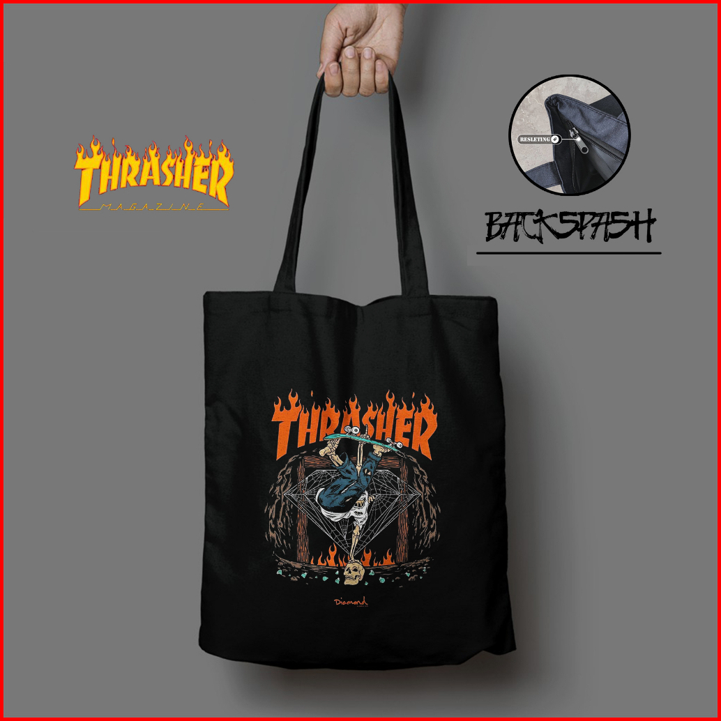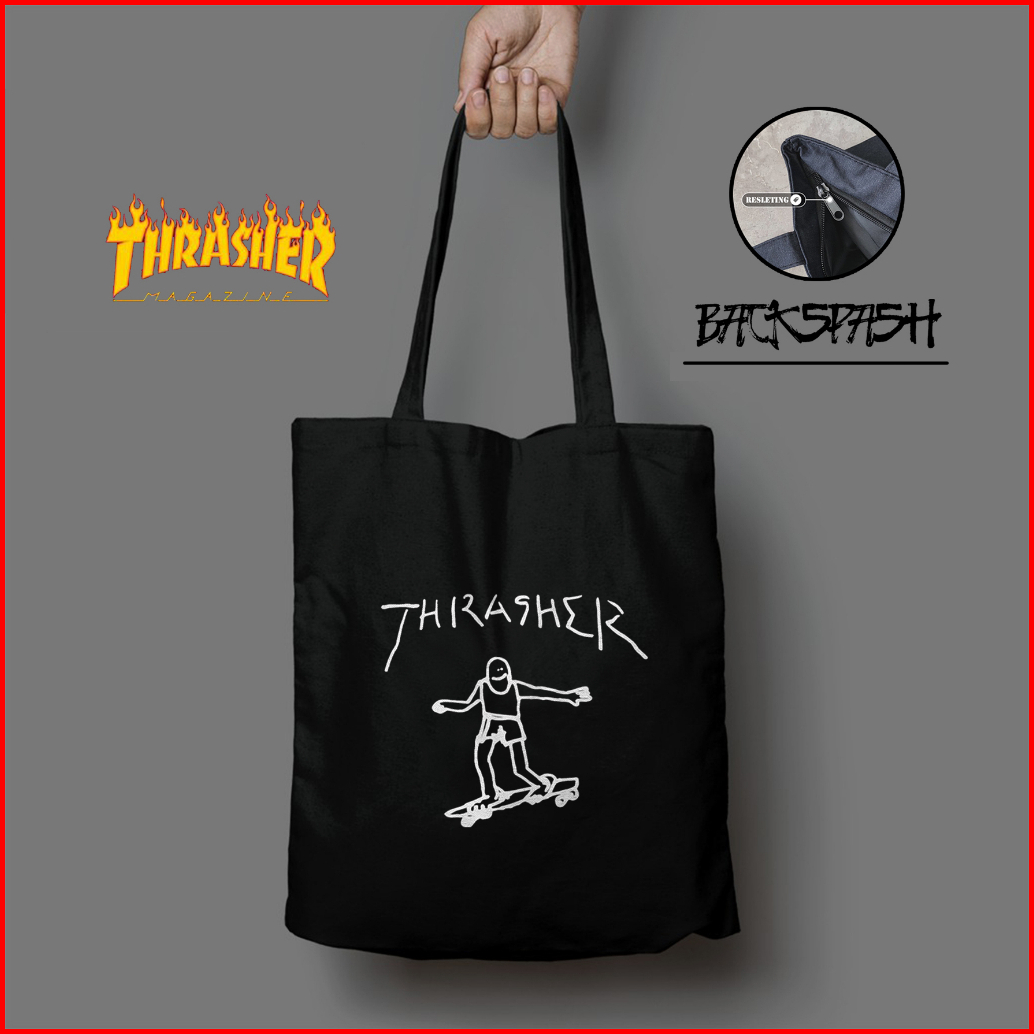 Tas Totebag Thrasher Skate Street Wear Pria Wanita