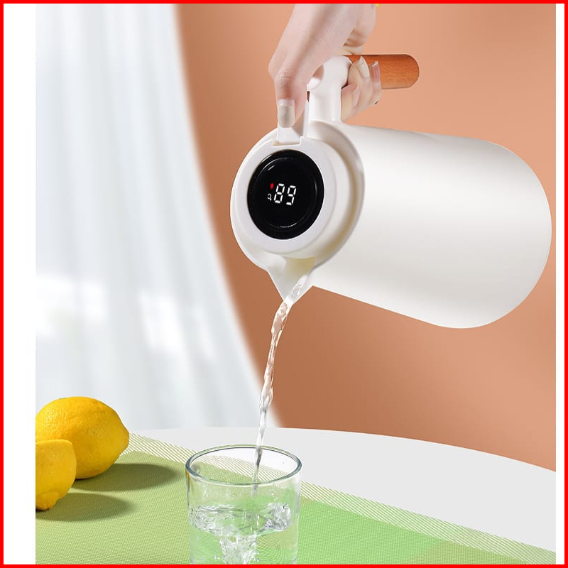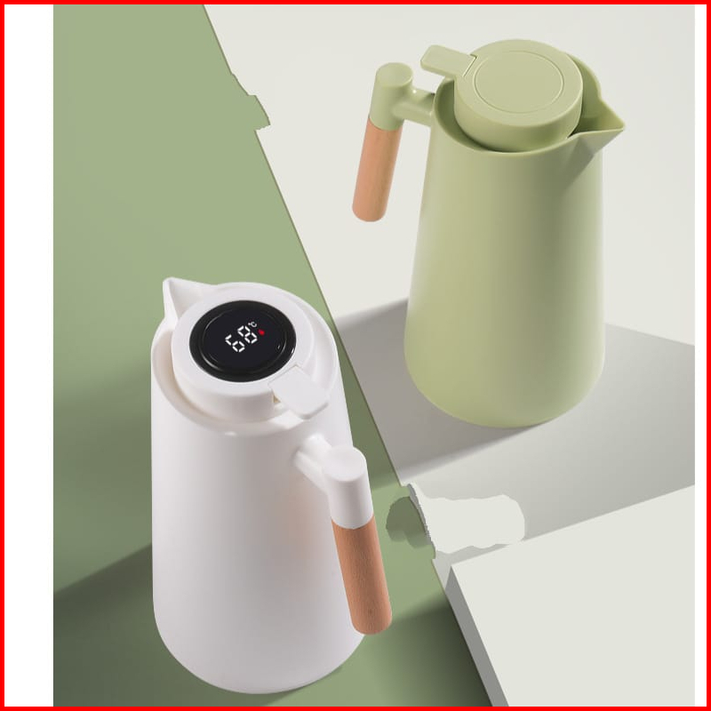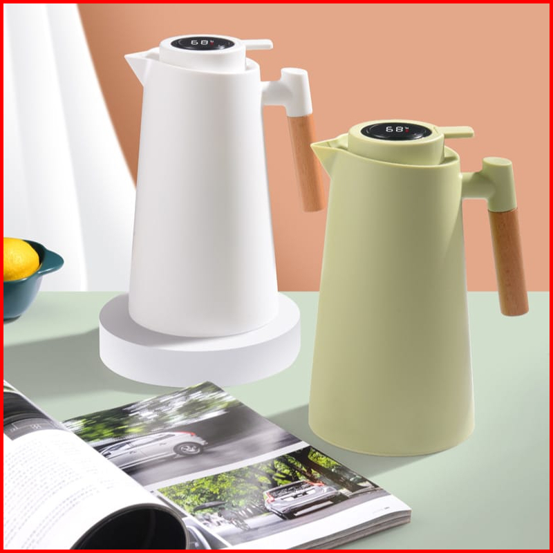 Bakindo Termos Teko Temperature Digital 1 Liter Teko Air Panas Gagang Kayu Elegant Asthetic Termos Kopi Termos Teh Kapas