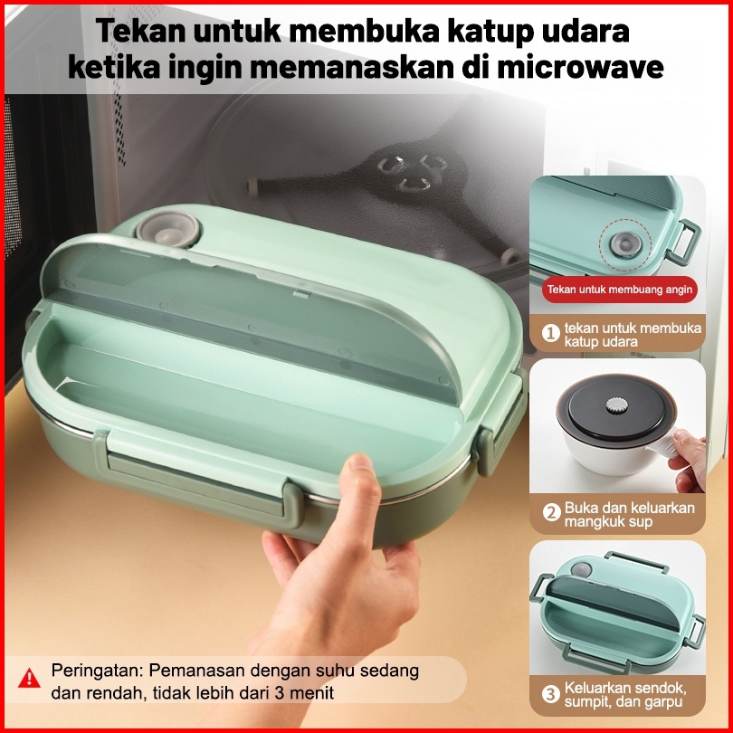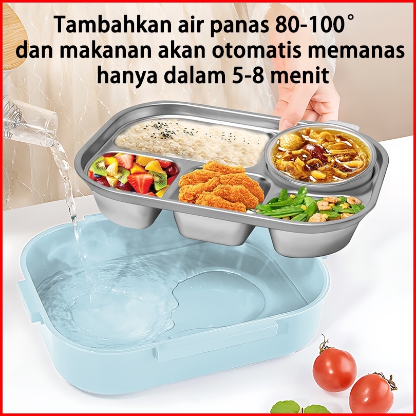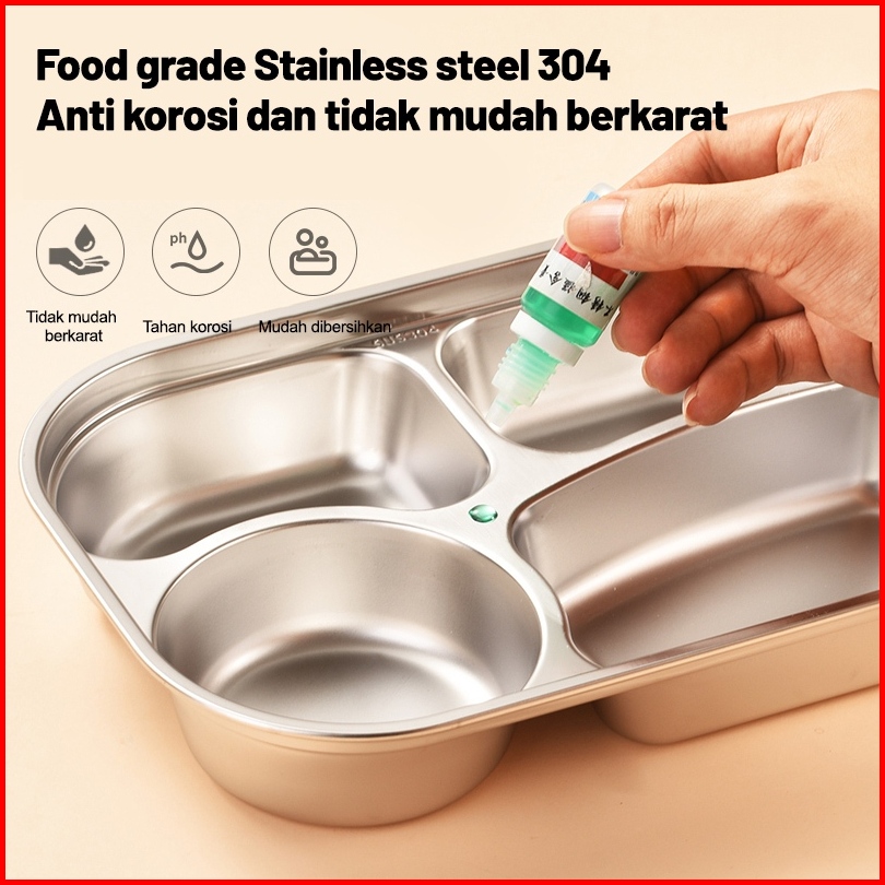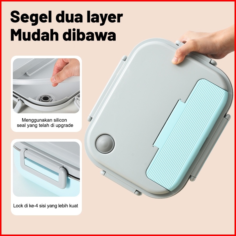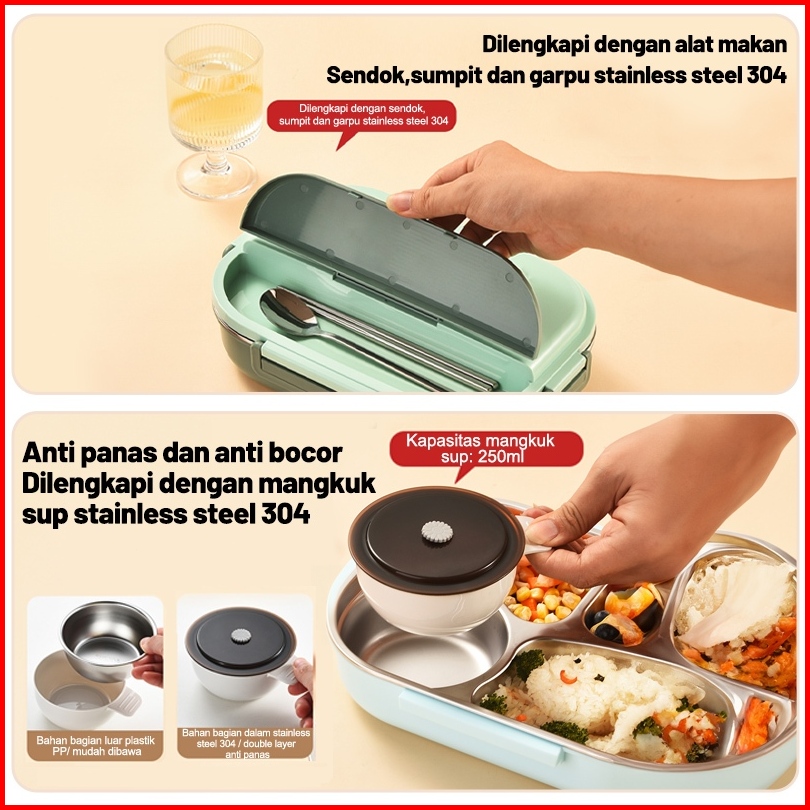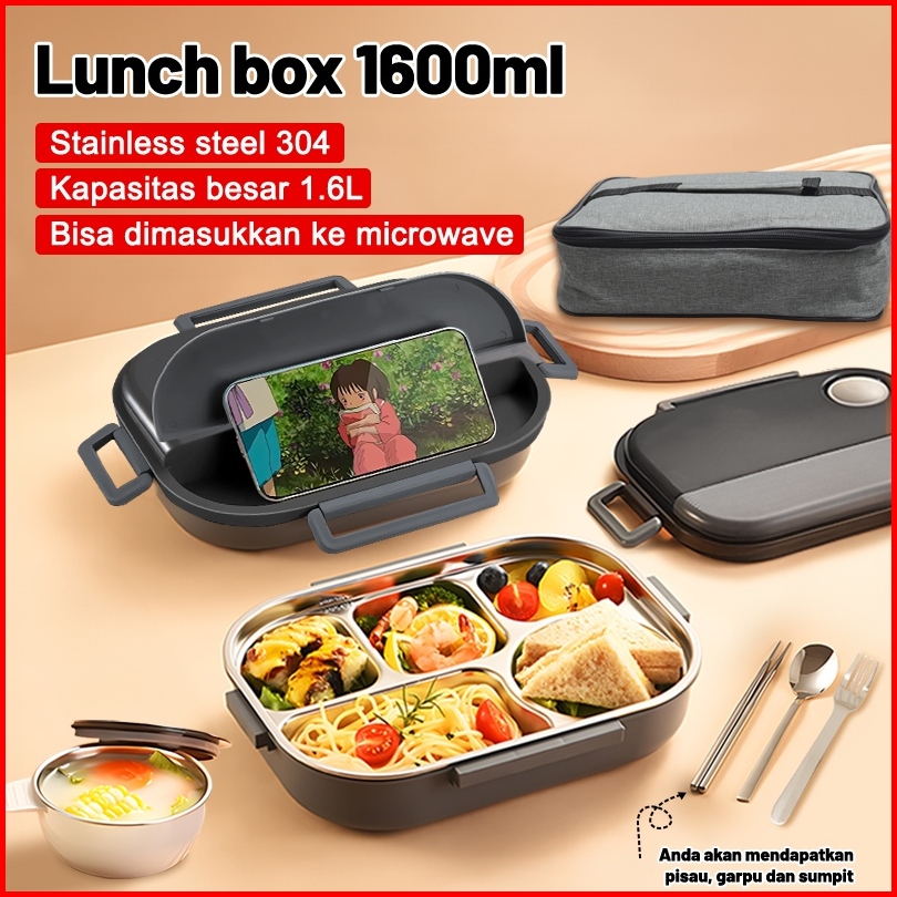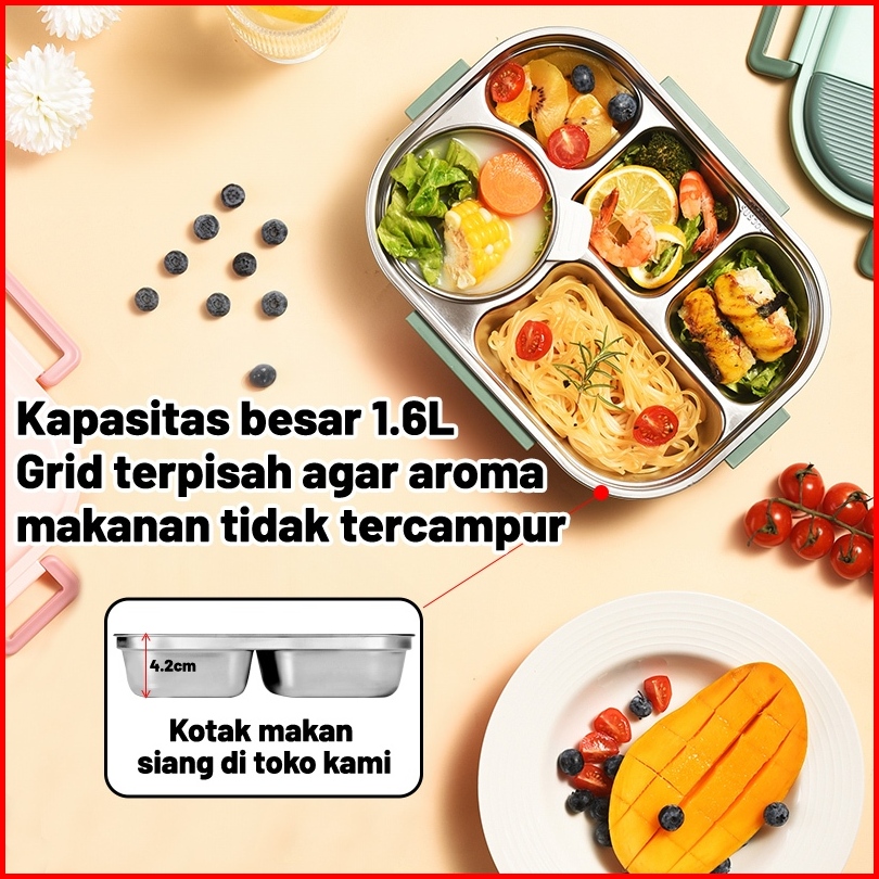 Uphome Lunch Box 1600ml Sekat 5 Stainless 304 Tahan Panas Dan Anti Tumpah Free Sendok Sumpit Garp