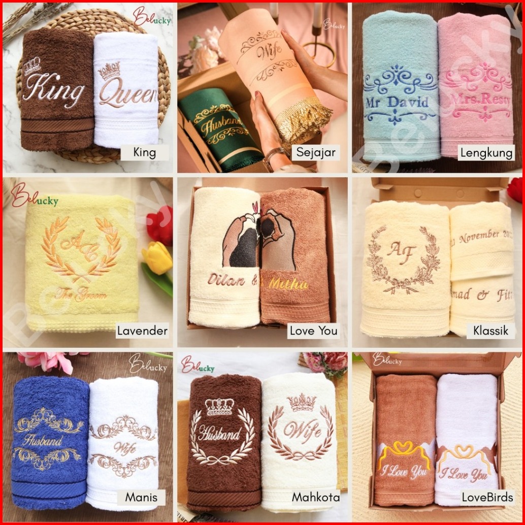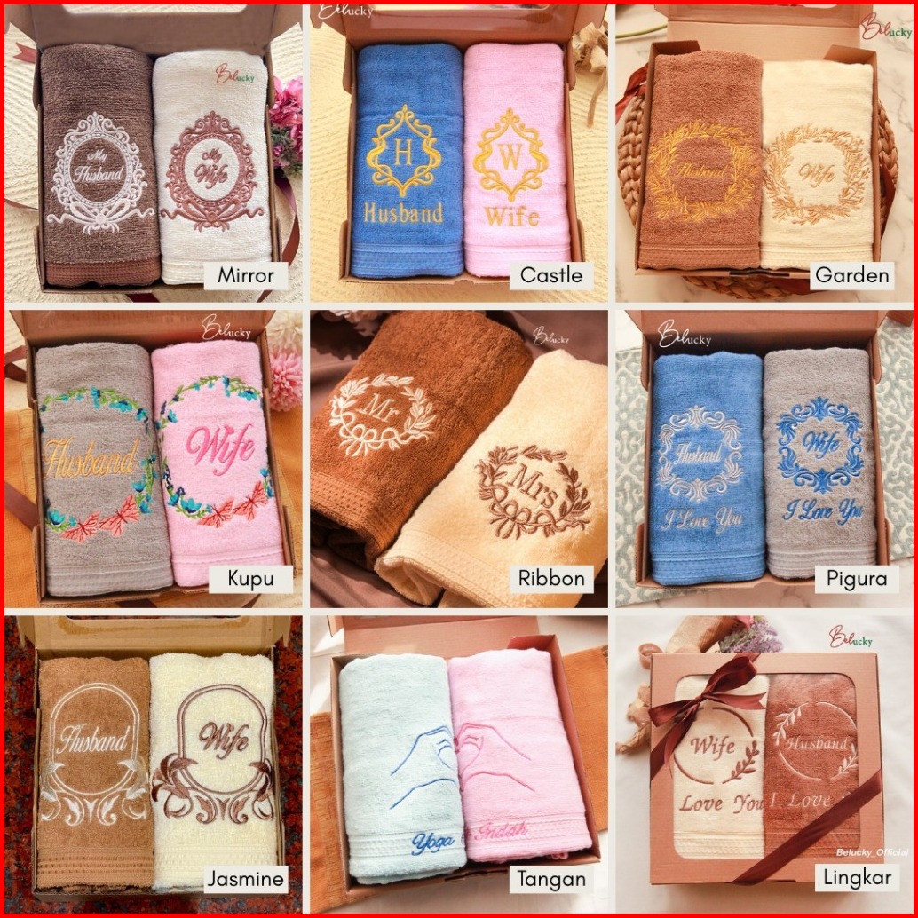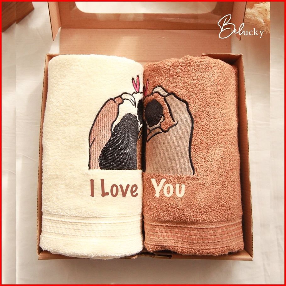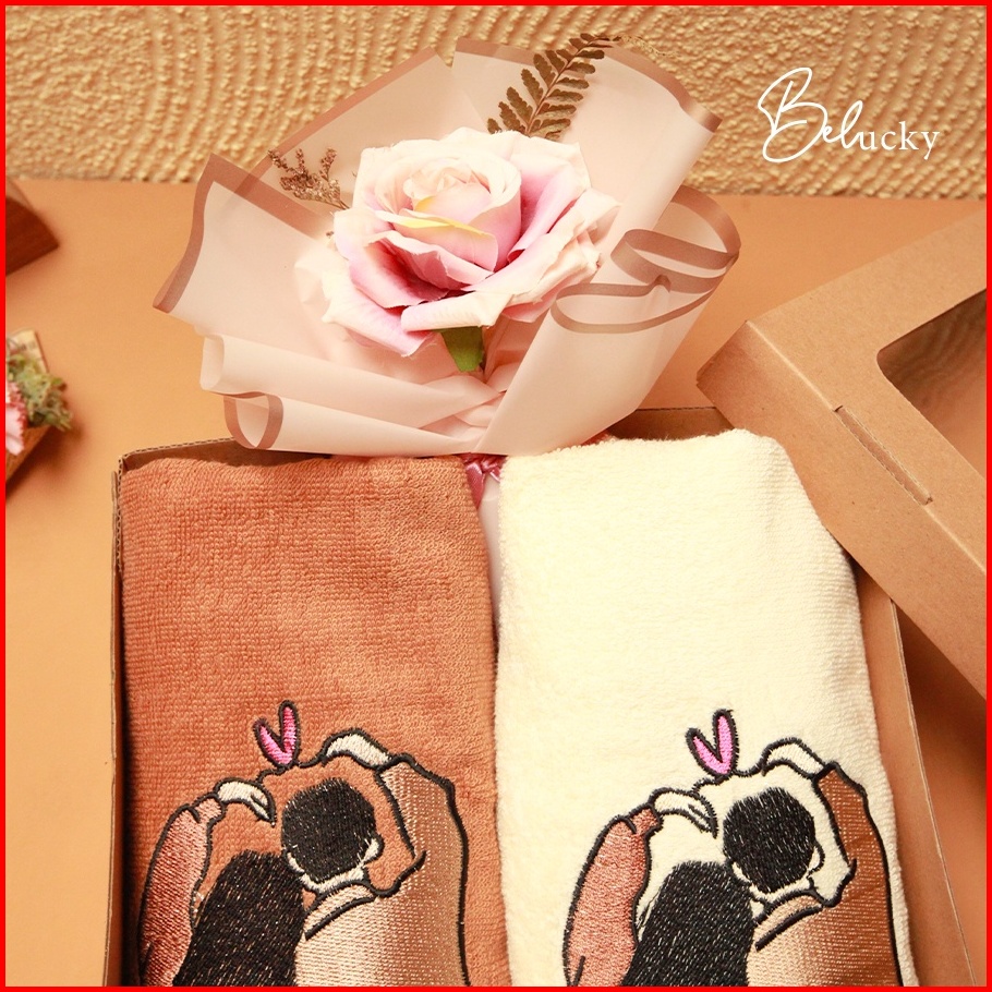 Handuk Couple Seserahan Hampers Ready Bordir Pasangan Gift Set Box Kado Pernikahan Wedding Gift Box Kartu Ucapan- Love Y