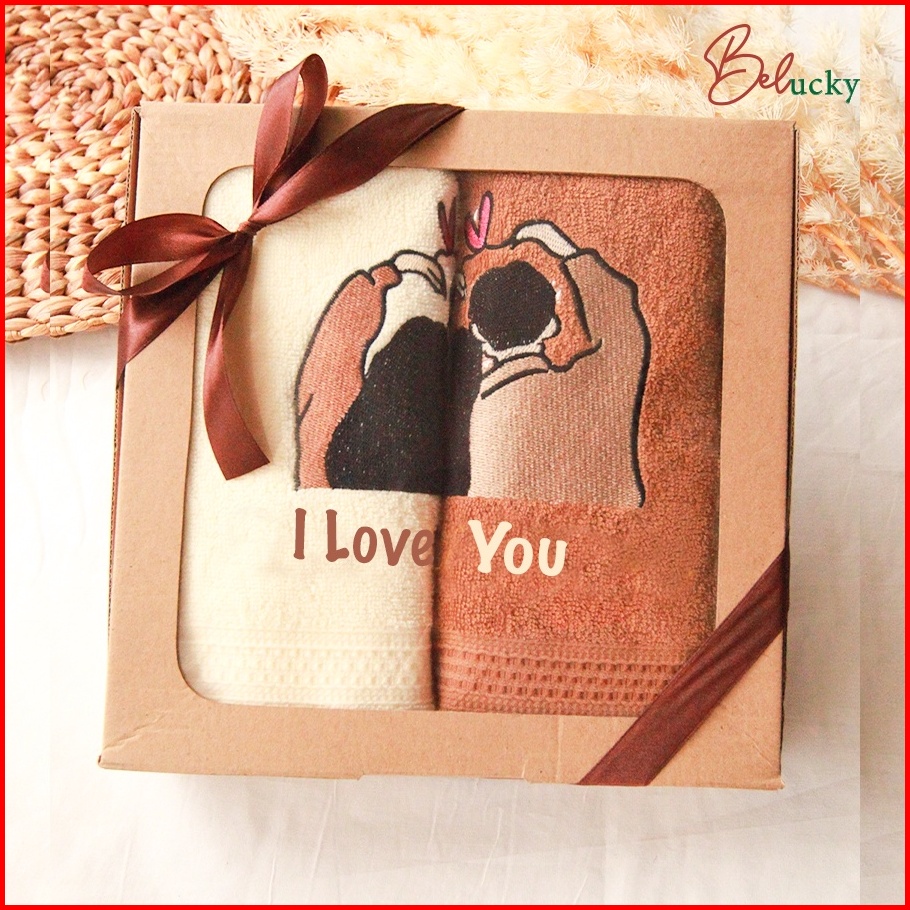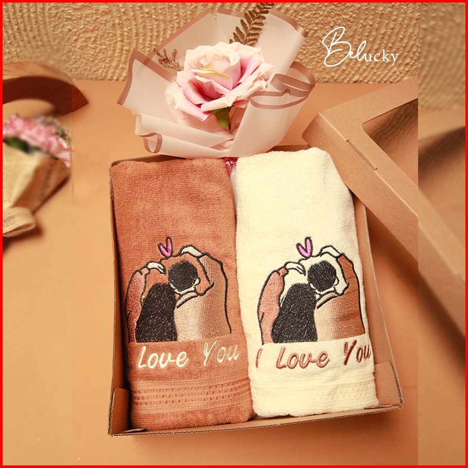 Handuk Bordir Ready Stok Premium Kado Pernikahan Seserahan Wedding Hampers- Love You
