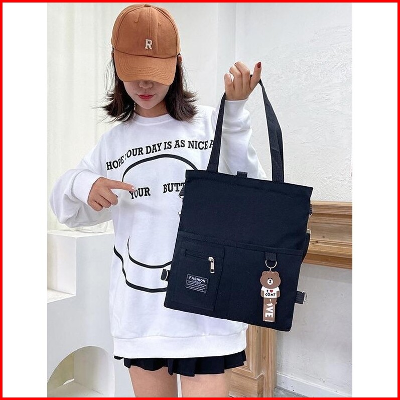 Totebag Kanvas Nikoni Bear Niche Tali Bahu Serbaguna Tas Sekolah Kuliah Kantong Tas Wanita Kekinian Tas Wanita Terbaru 2