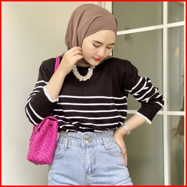 Sweater Rajut Wanita Premium - Knit Oversize Two Tone Gia Top