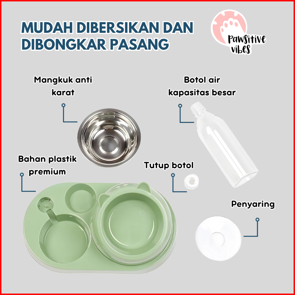 Mangkok Hewan Tempat Makan Hewan Pet Feeder 2 In 1 Anti Semut - Tempat Makan Kucing Anjing 2 In 1 Dengan Mangkok Stainle