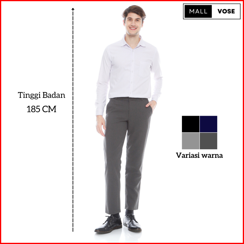Mallvose - Celana Pria Formal Bahan Premium Navy Black Dark Grey Light Grey Slimfit