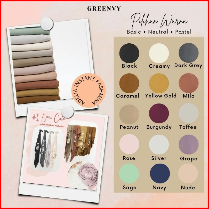 Hitam, Milo, Grape, Toffee, Sage Green, Grey, Yellow Gold, Burgundy, Peanut, Silver, Creamy, Rose, Caramel, Navy, Nude