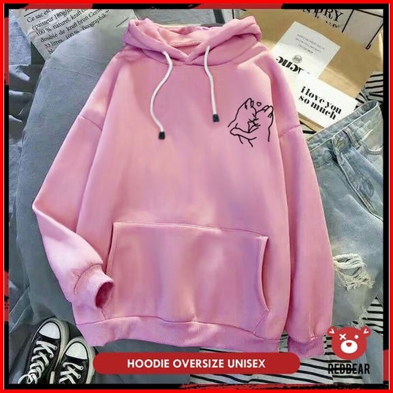 Redbear Hoodie Jumper Kucing Love Sablon M-xxl Pria Wanita