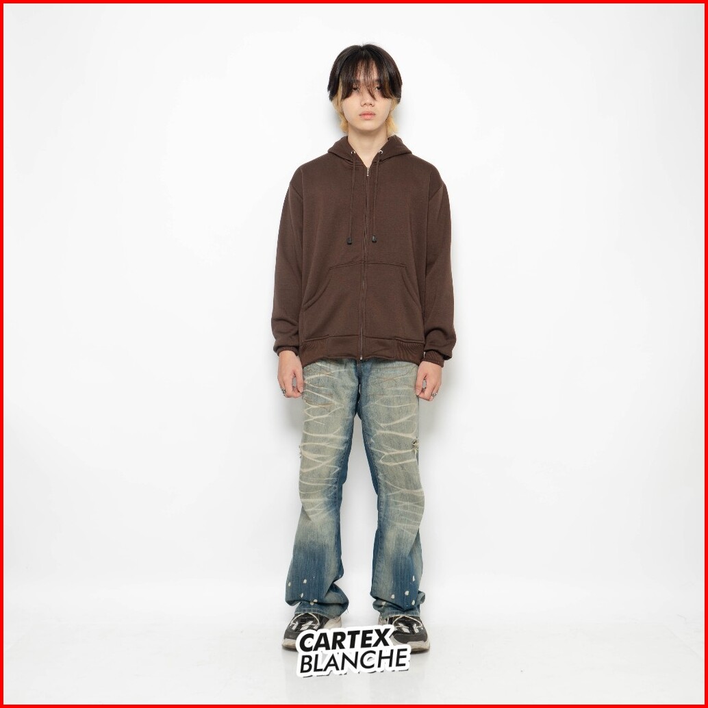 Cartexblanche - Jaket Hoodie Zipper Dark Brown Polos Pria - Wanita Size M - Xxl