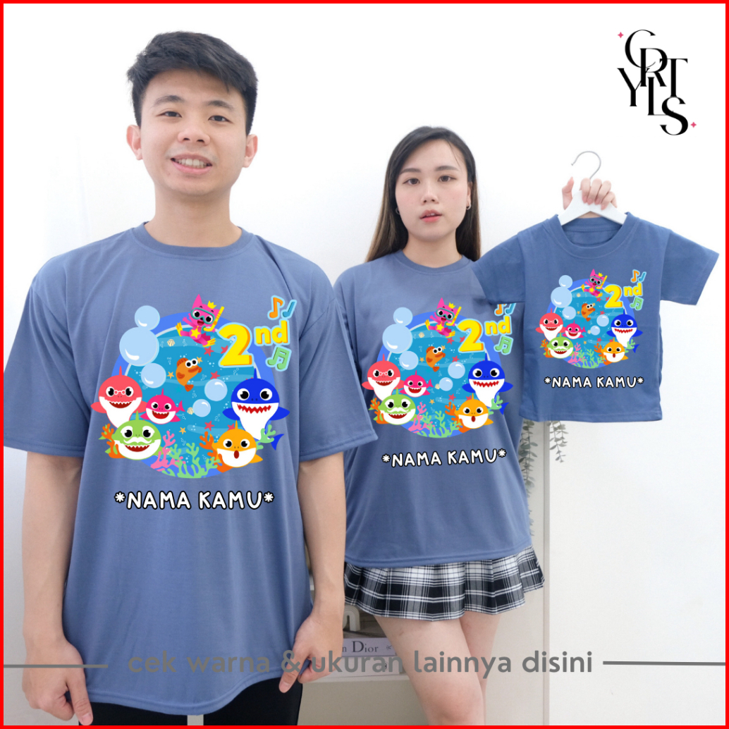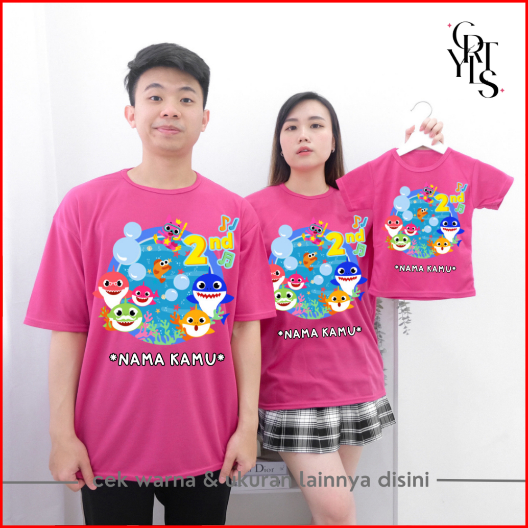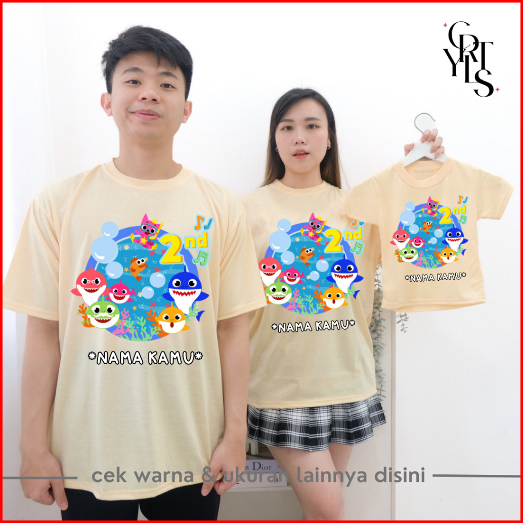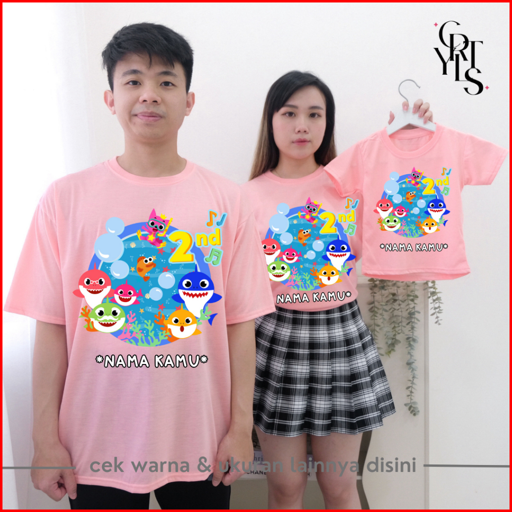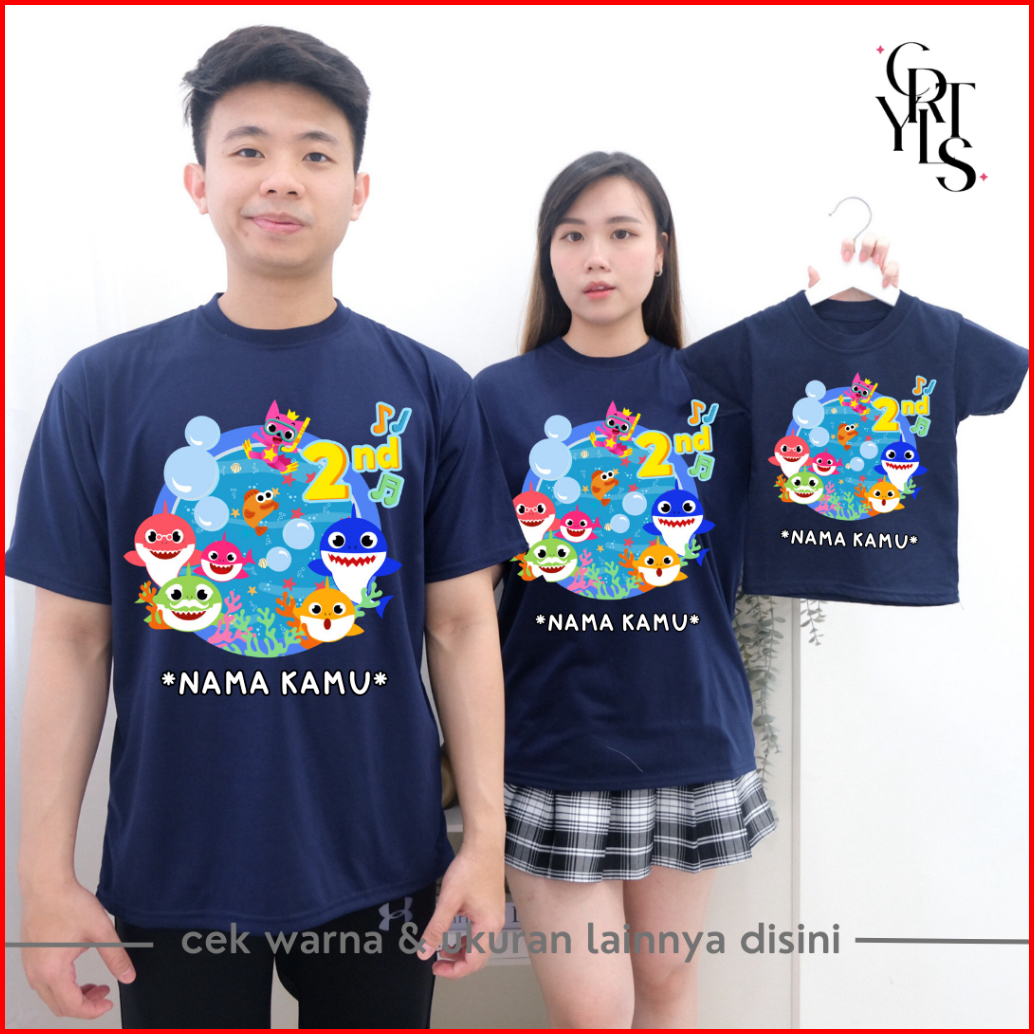 Carotyles Baju Atasan Kaos Baby Shark Ulang Tahun Birthday Custom Nama Dan Nomor 1-9 Couple Keluarga Family Wanita Anak