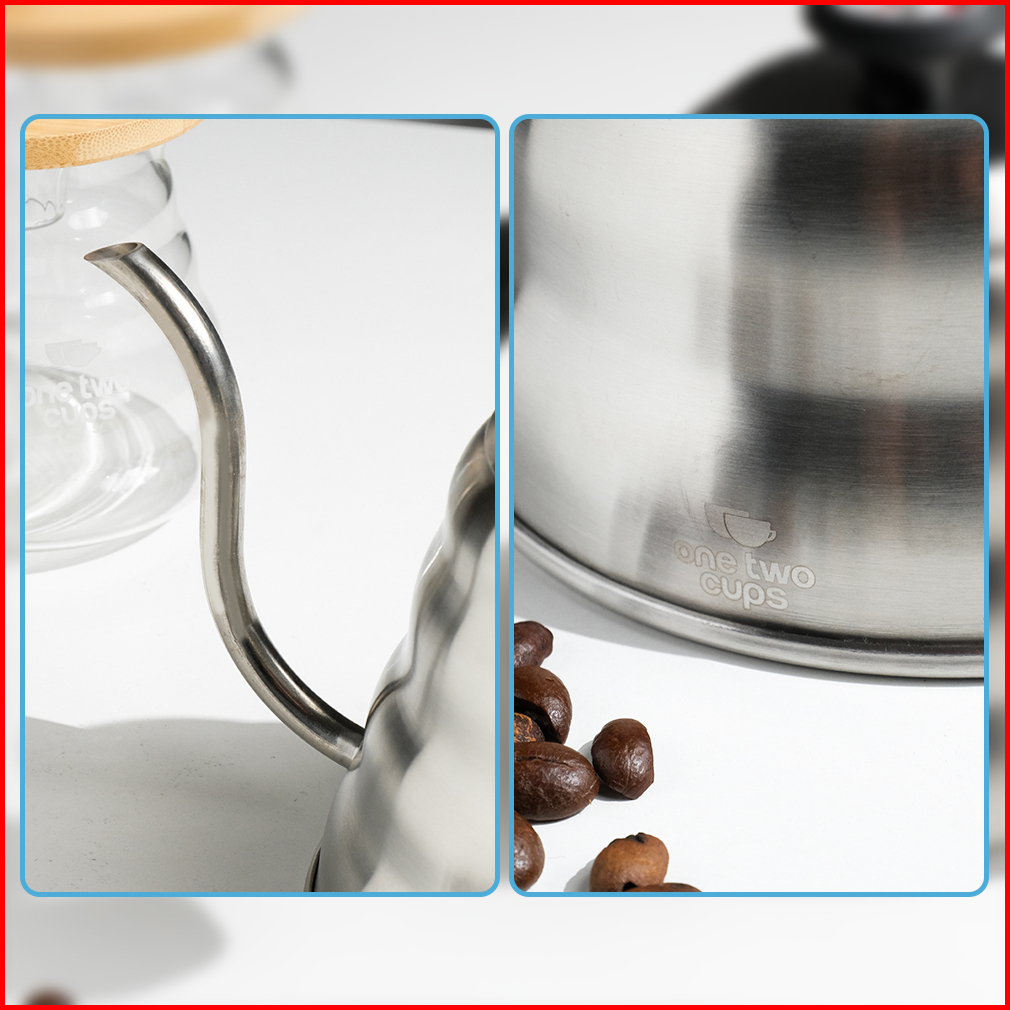 One Two Cups Coffee Maker Pot Drip Kettle Teko Barista Leher Angsa With Thermometer - 1155ml