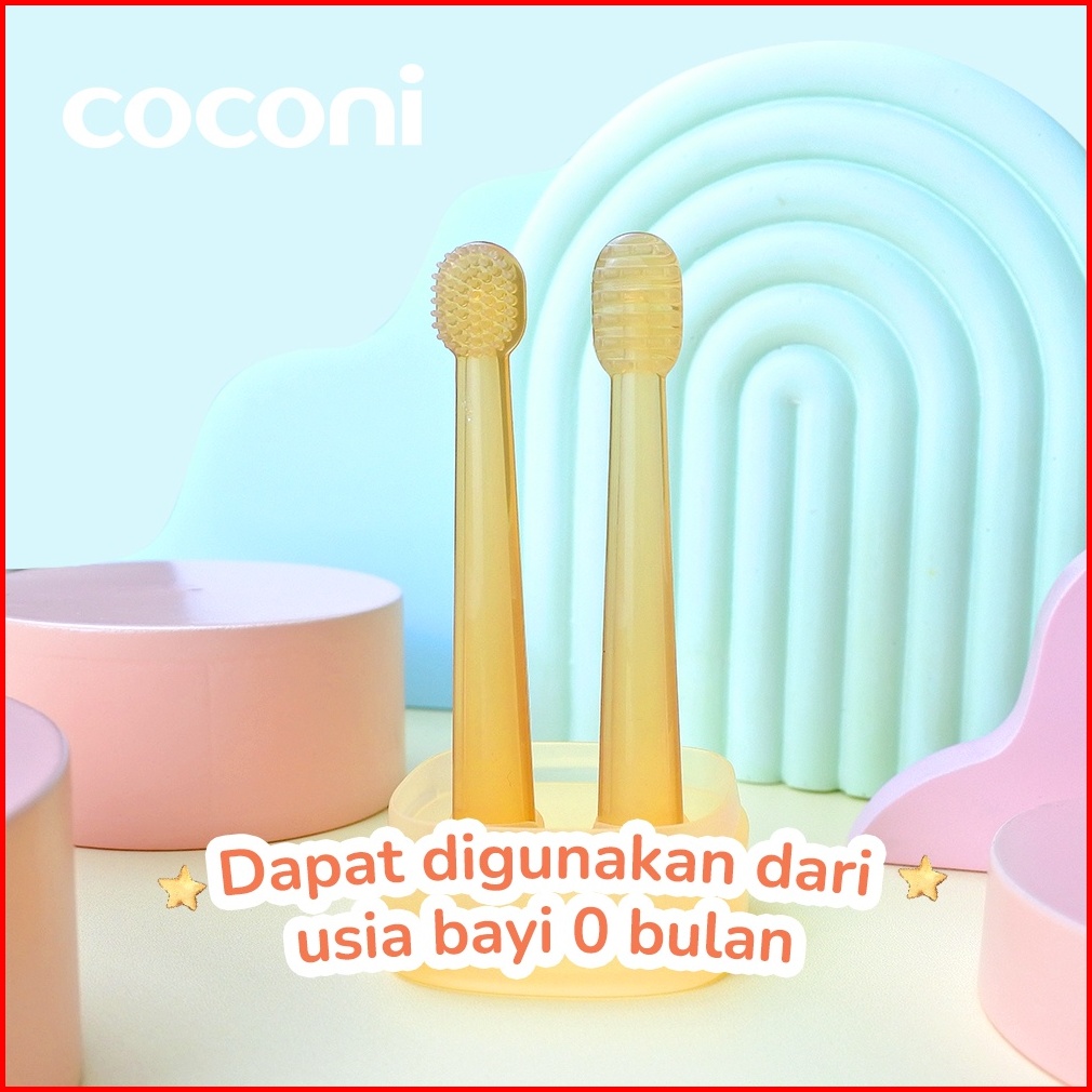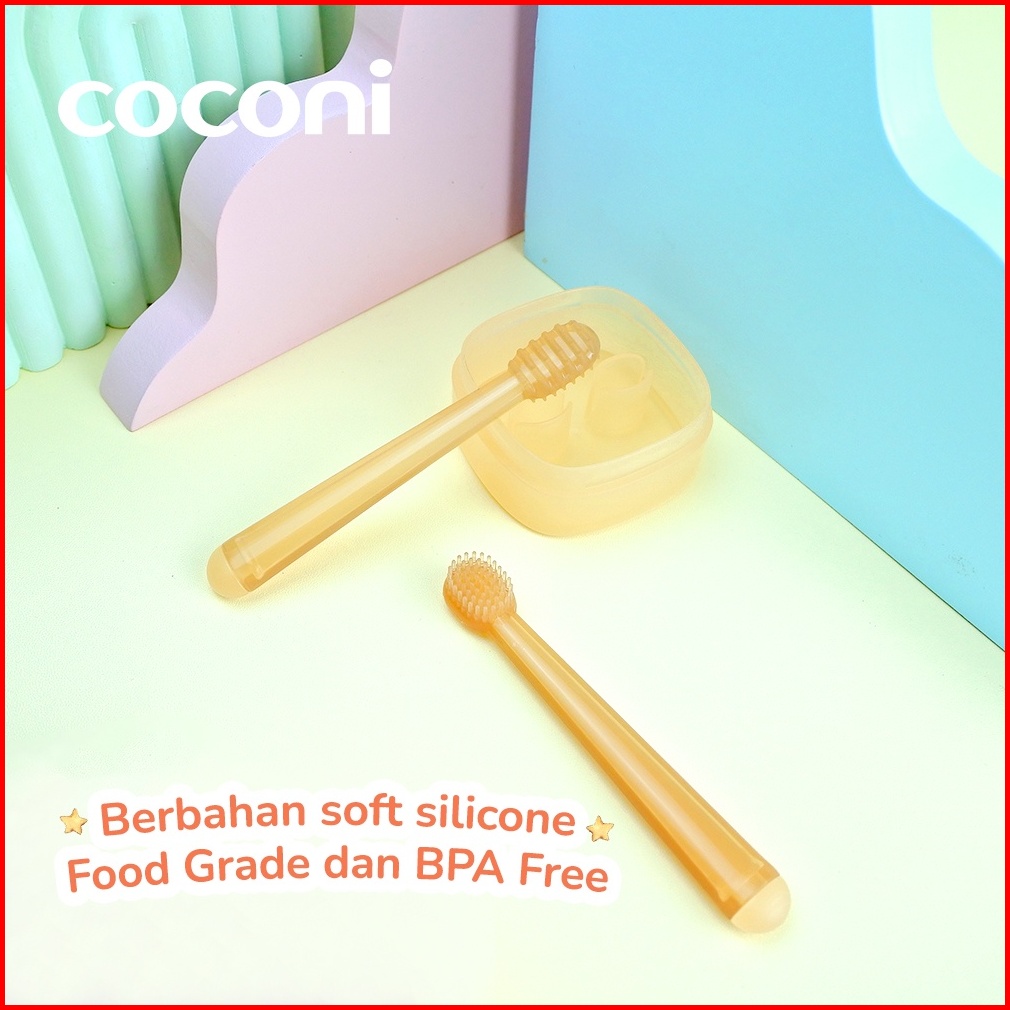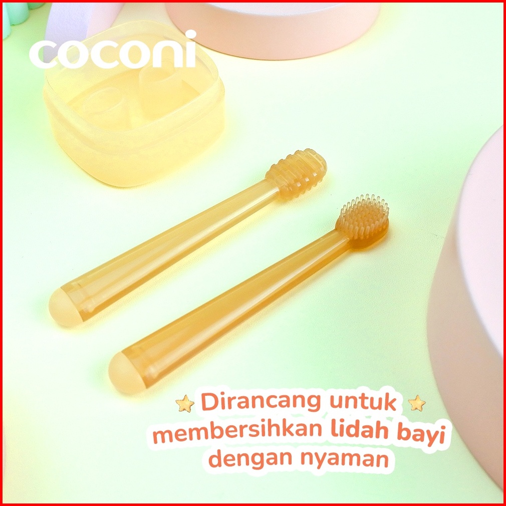 Coconi Baby Oral Care Pembersih Mulut Bayi Silikon Set Sikat Lidah Bayi Sikat Gigi Bayi Isi 2 Pcs