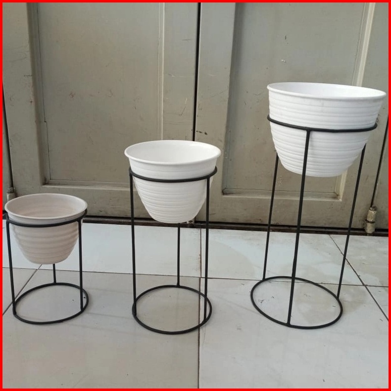 1 Set Isi 3 Standing Pot Besi Dudukan Pot Besi Rak Pot Bunga Kaki 3