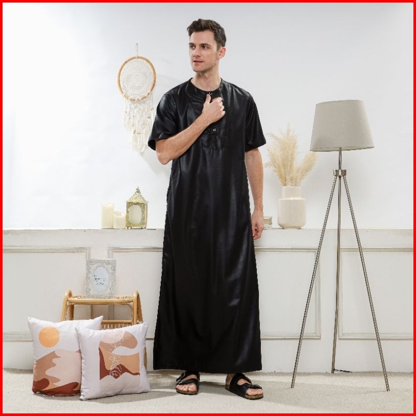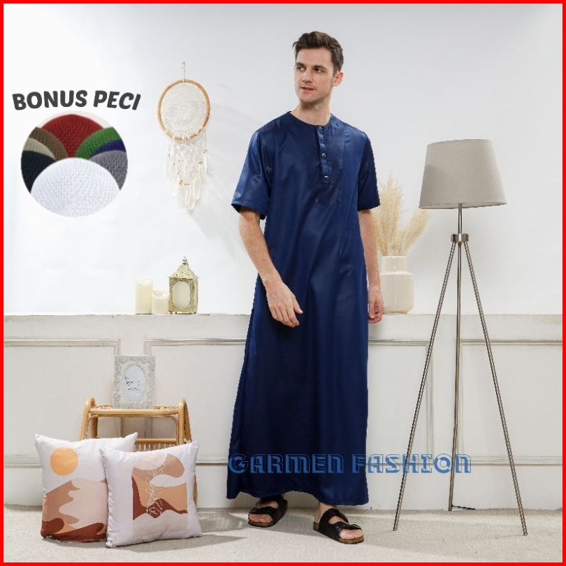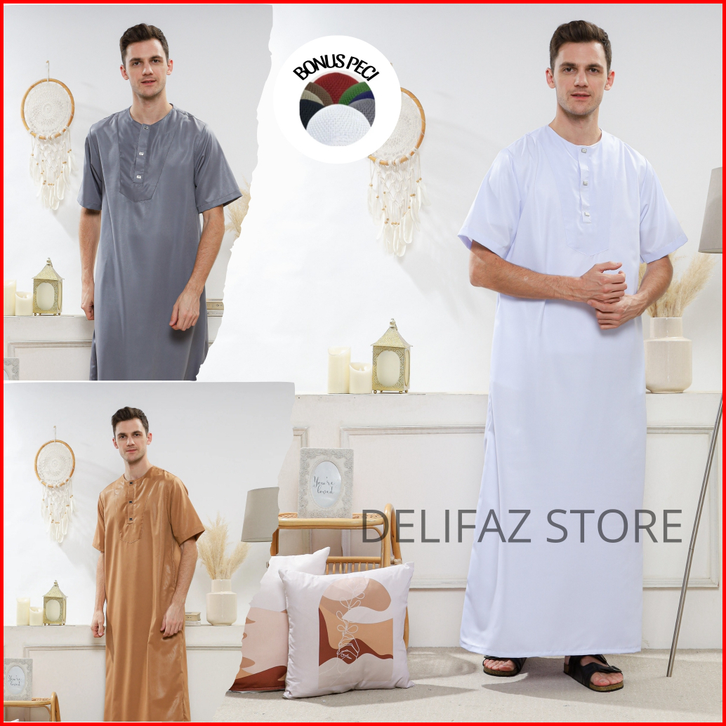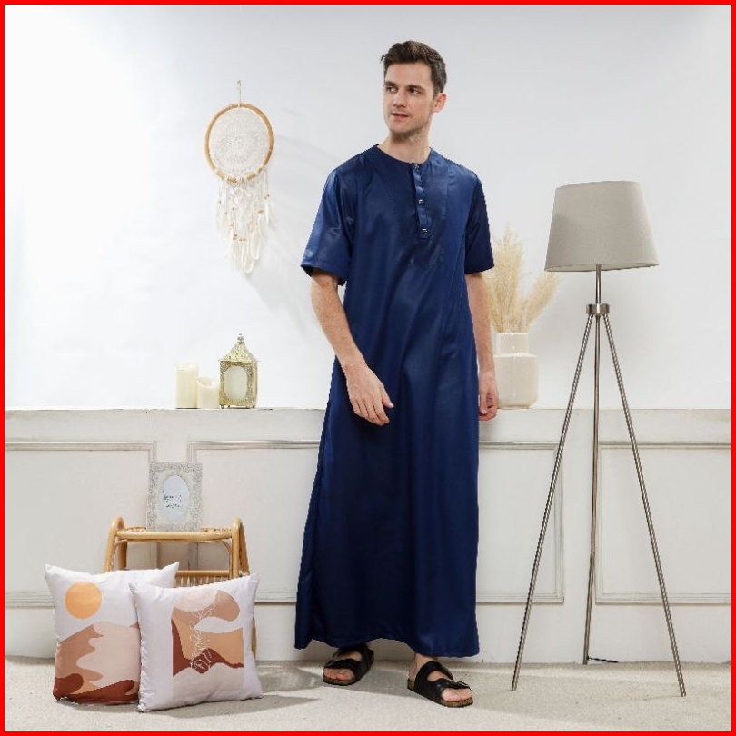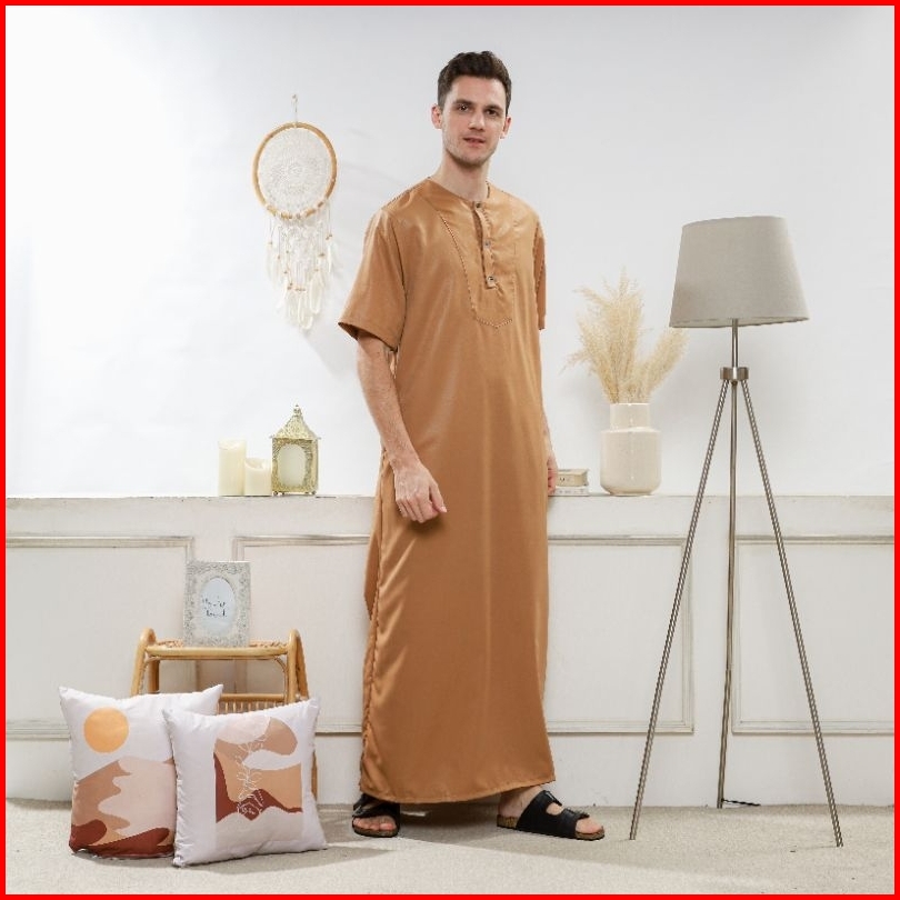 Jubah Gamis Pria Polos Lengan Pendek Tanpa Kerah Jubah Laki Laki Gamis Asy Syafiq Premium Terbaru