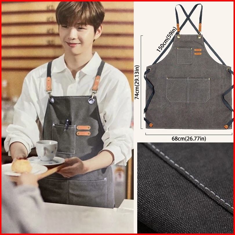 Apron Celemek Tebal Celemek Barista Antikotor Dapur Restoran Pekerja Tukang Cukur Tukang Kayu Celemek Toko Bunga Untuk W