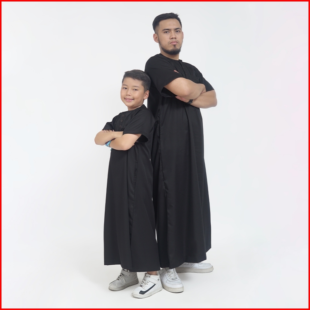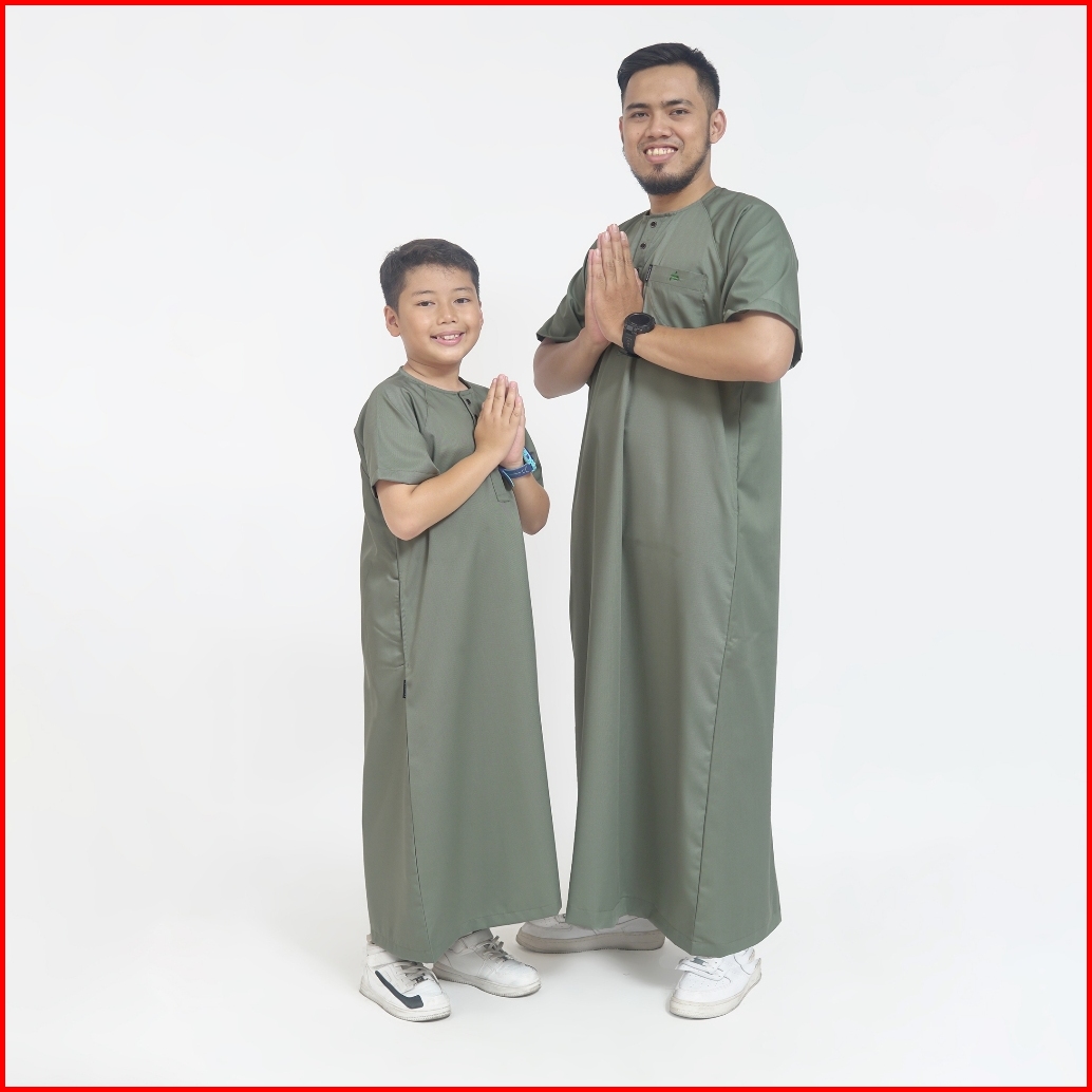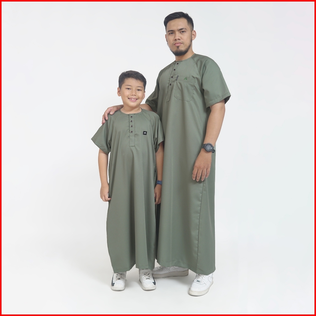 Khoirummah Jubah Musa Couple - Gamis Muslim Ayah Dan Anak Laki Laki Lengan Pendek - Sage