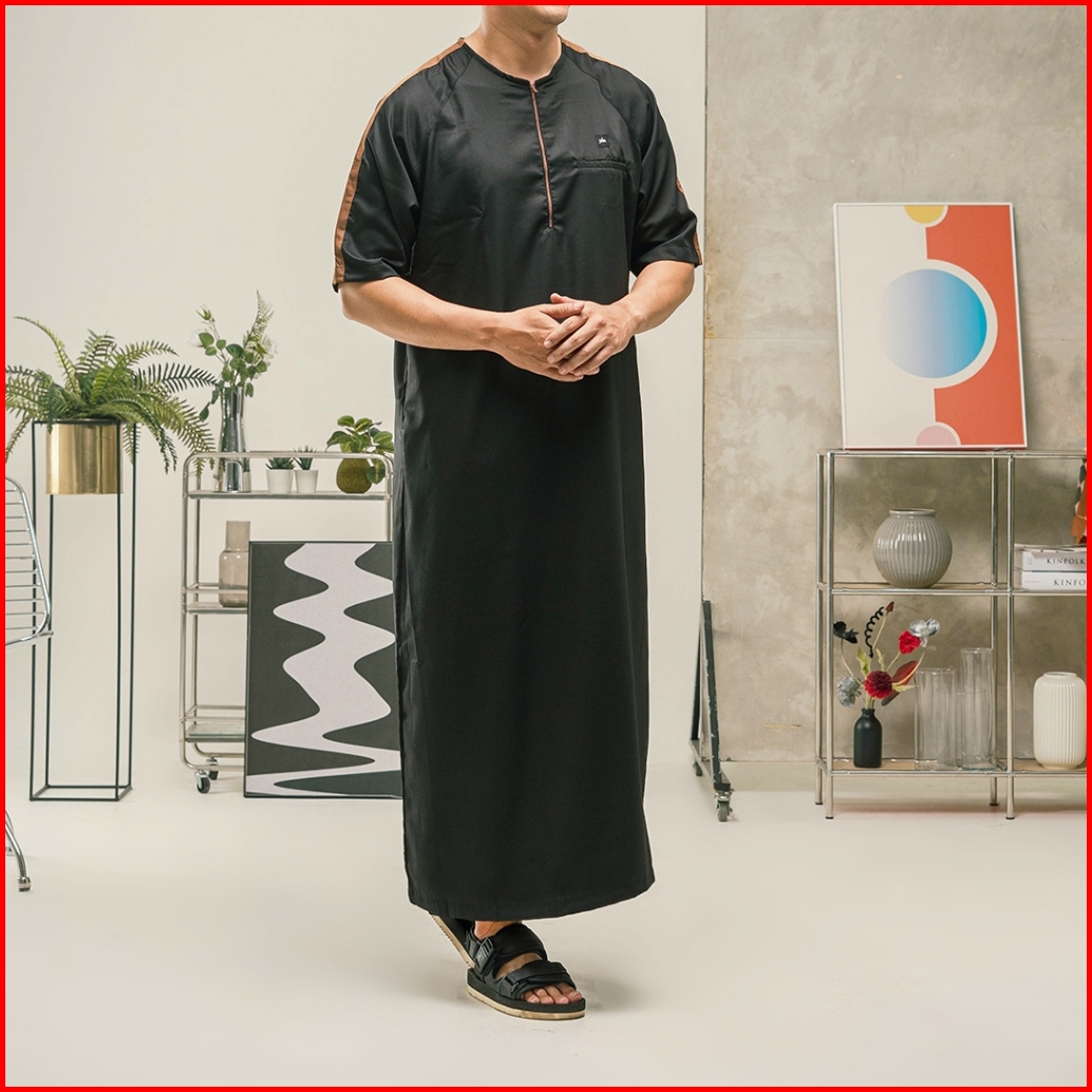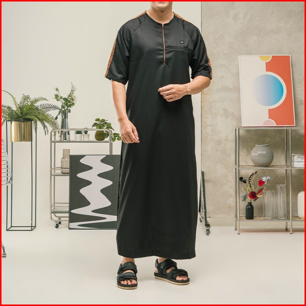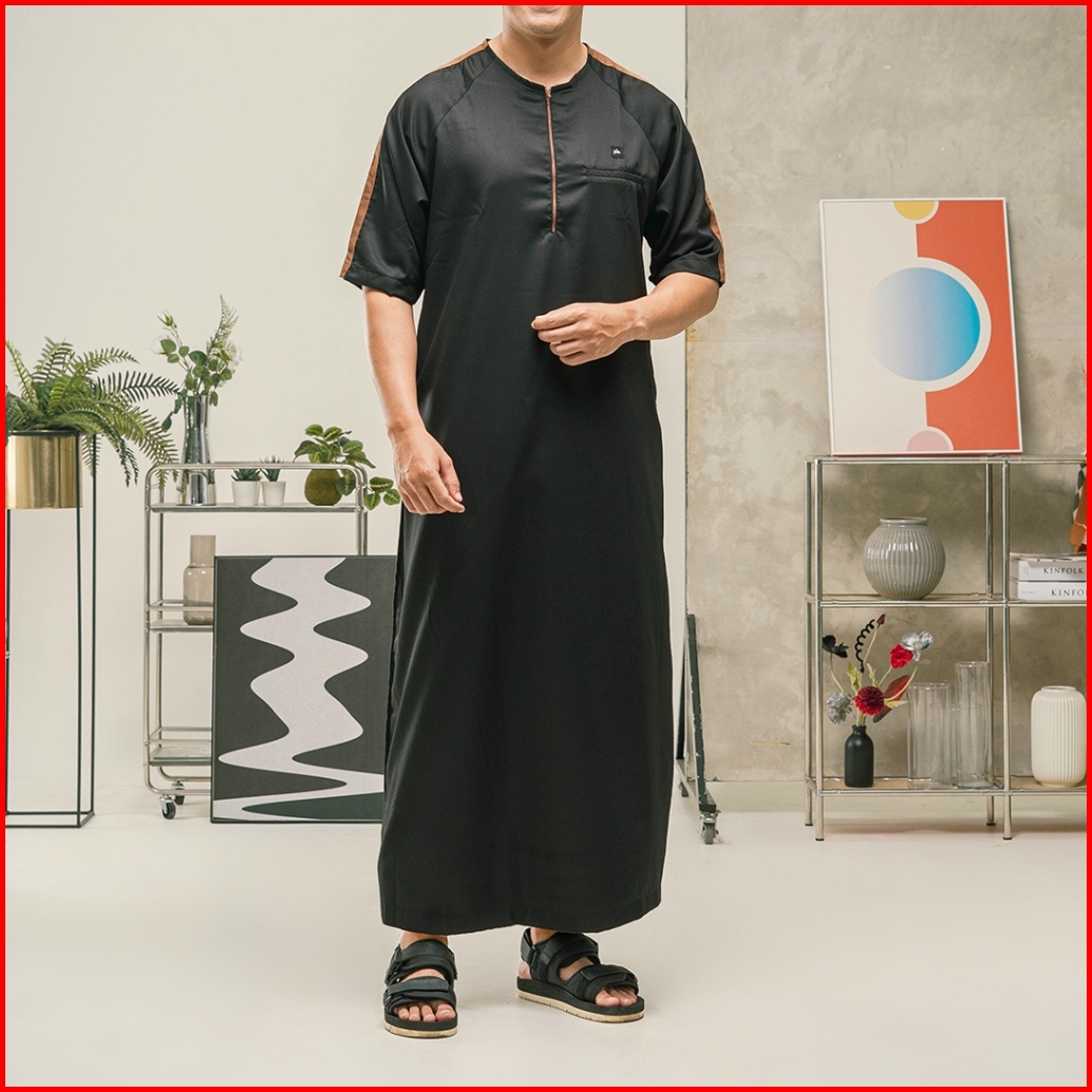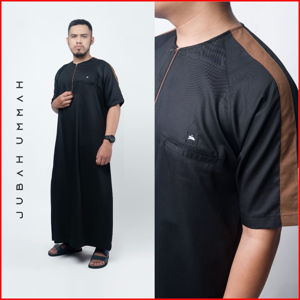 Khoirummah Jubah Ummah Dewasa Gamis Pria Jubah Polos Tangan Pendek Black