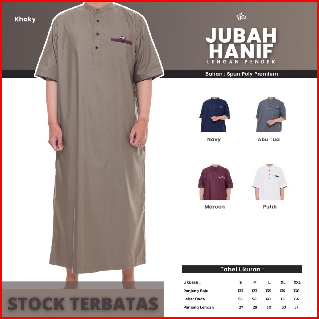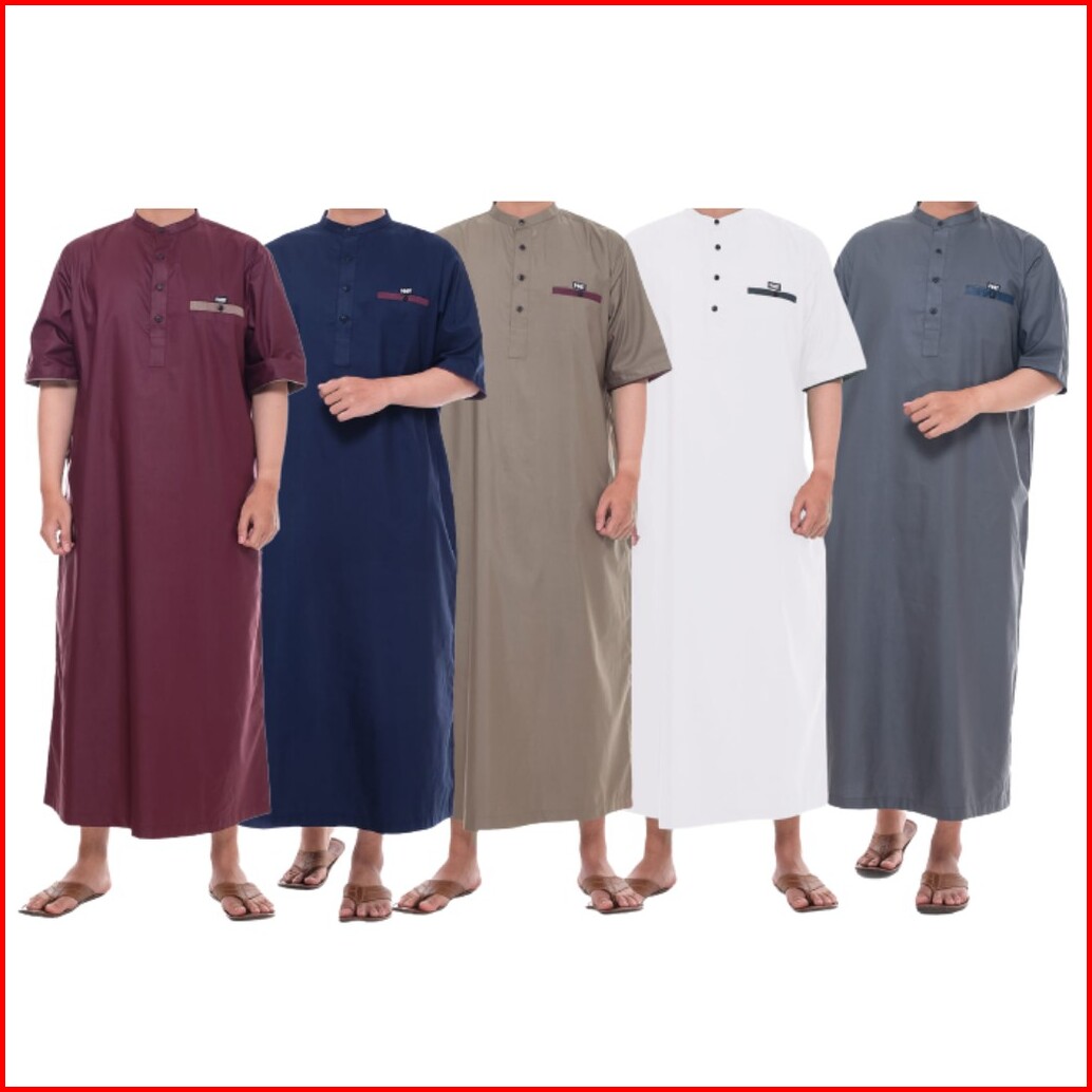 Jubah Maroko Lengan Pendek Pria Muslim Kerah Shanghai Kekinian Motif Kombinasi Polos Cowok Laki Laki Dewasa Spun Poly Po