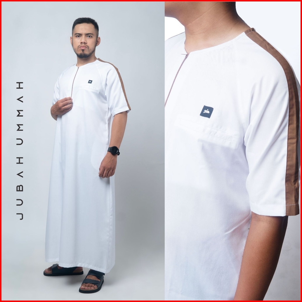 Khoirummah Jubah Ummah Dewasa Gamis Polos Tangan Pendek Jubah Pria Dewasa White