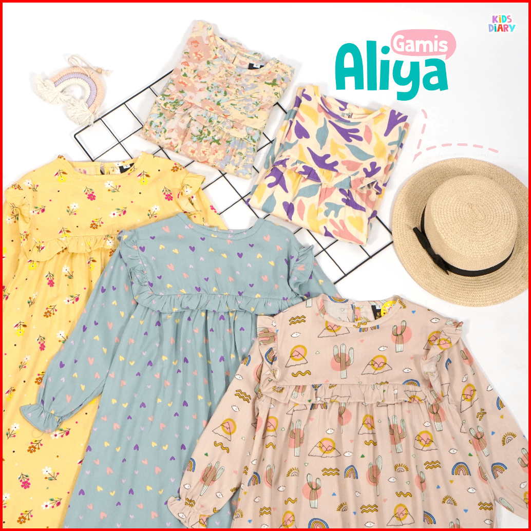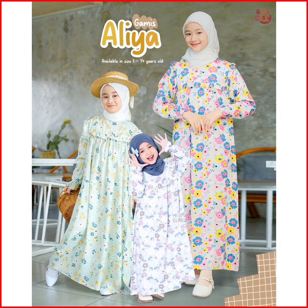 Kids Diary Plus - Gamis Anak Perempuan Aliya Katun Rayon Motif 1-14 Tahun Dress Muslim Casual Katun Rayon Adem Ringan Ca