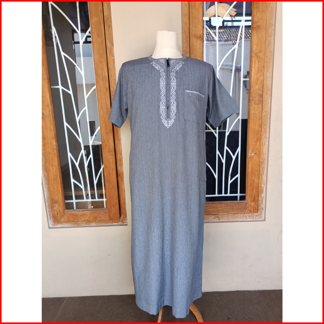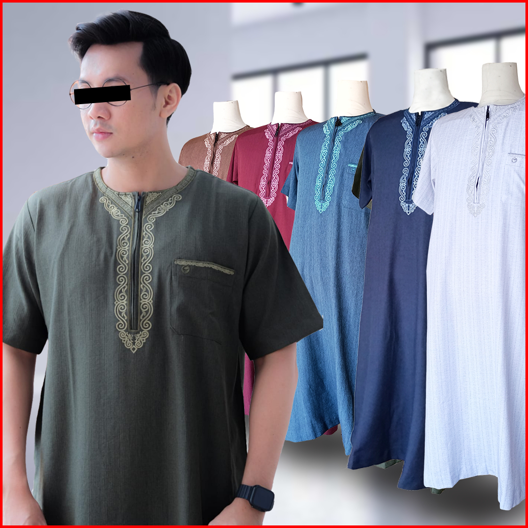 Jubah Gamis Pria Oblong Lengan Pendek Zipper Alfaruq By Ilnaaf