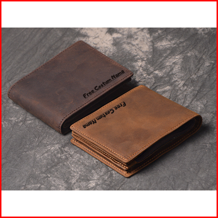 Dompet Pria Kulit Asli Crazy Horse Grade Aa Bisa Costum Nama