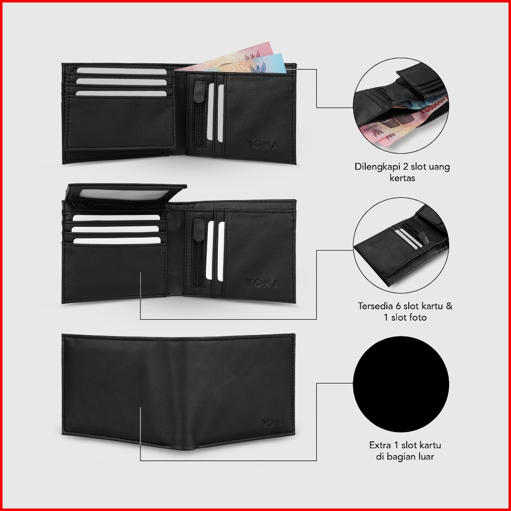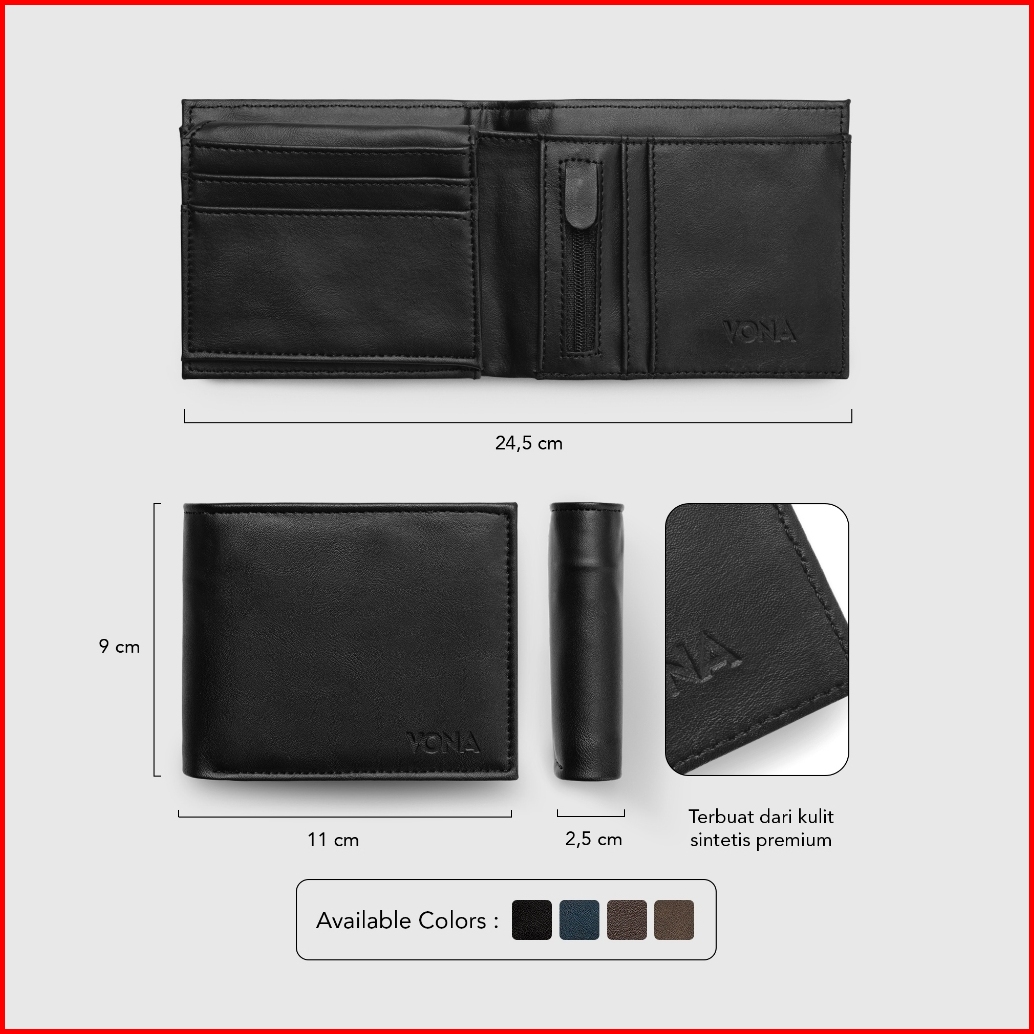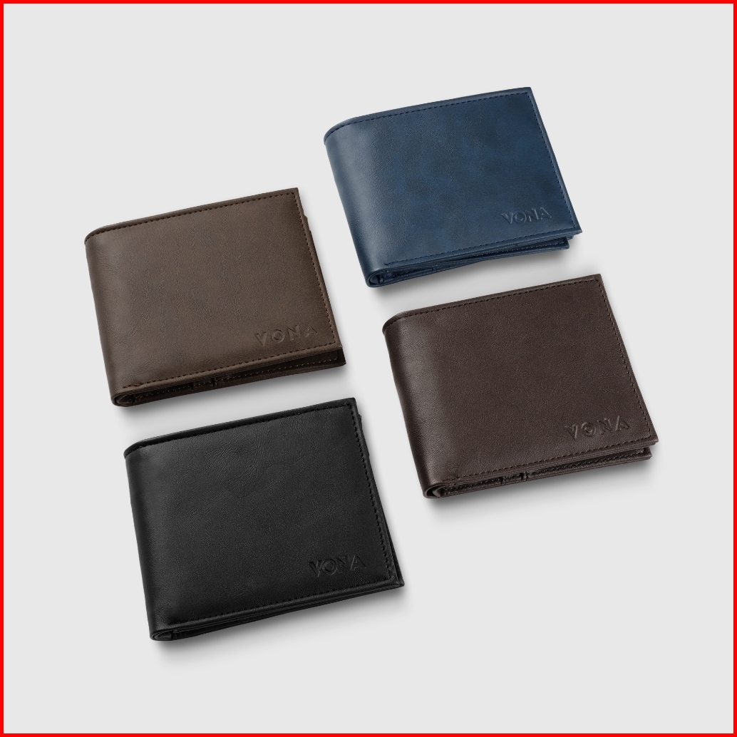 Vona Ezra Wallet - Dompet Pendek Pria Kulit Pu Lipat Dengan 3 Ruang