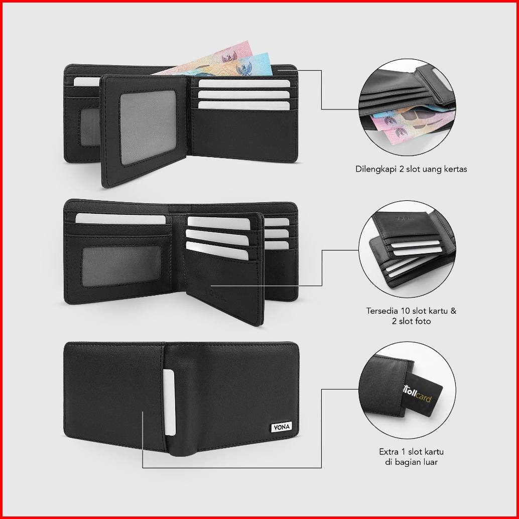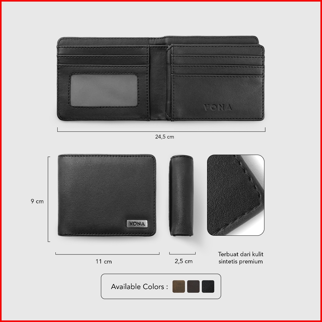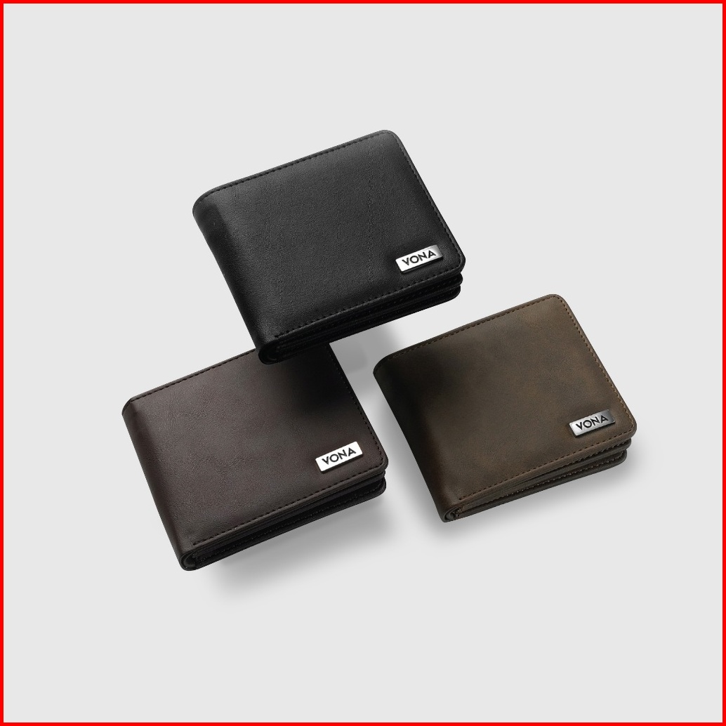 Vona Loxley Wallet - Dompet Pria Lipat Pendek 3 Ruang Extra Slot Kartu Kulit Pu Polos