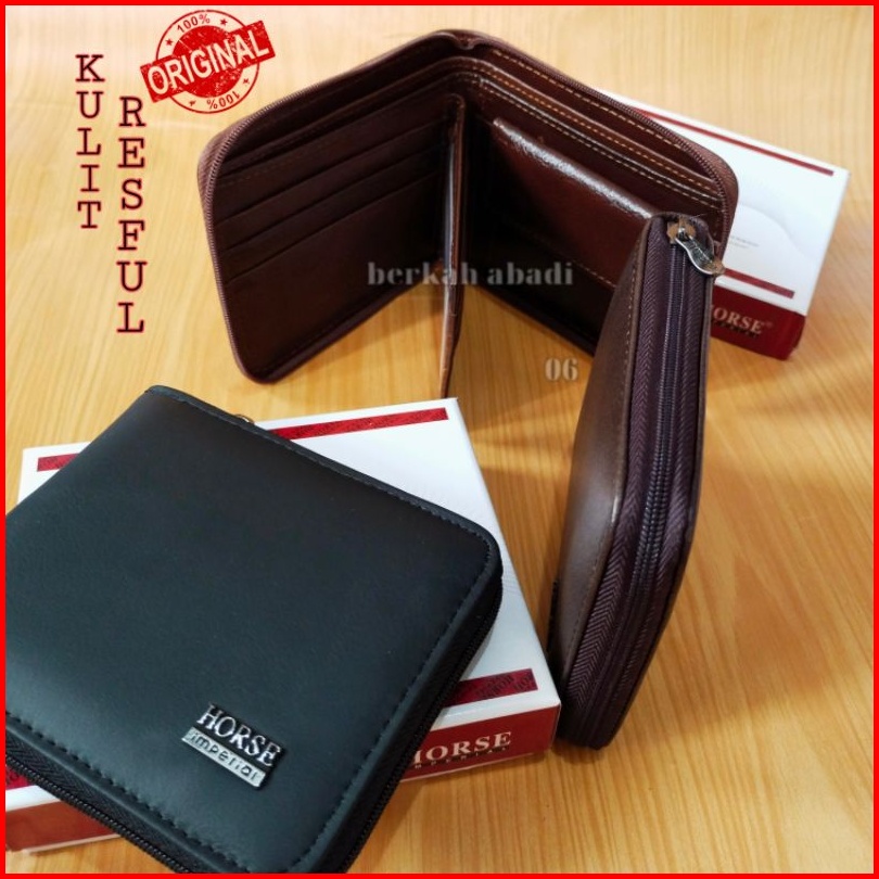 Dompet Resfull Resleting Putar Pria Wanita Kulit Sapi Asli